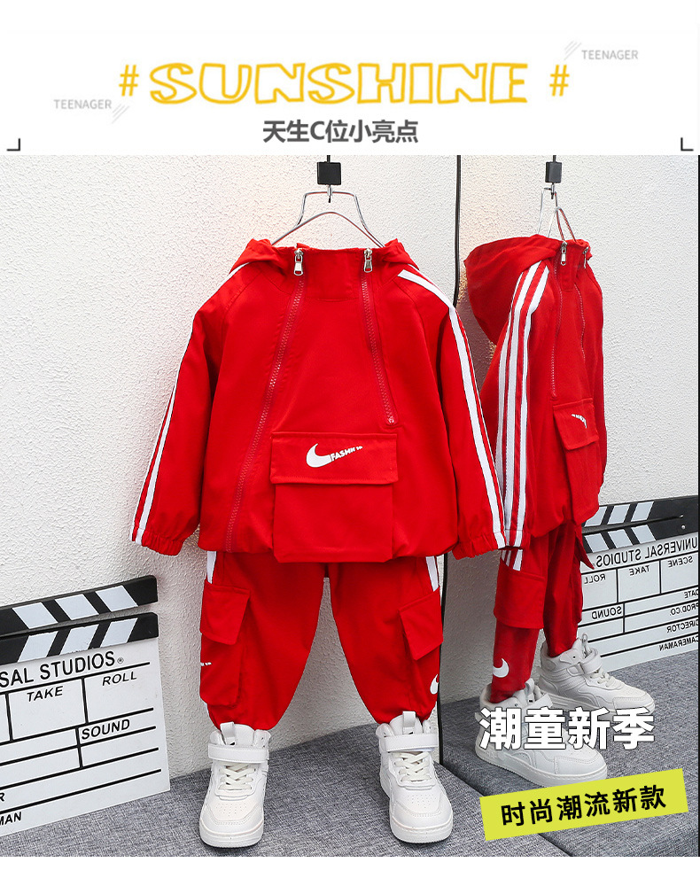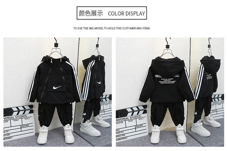 소년 정장 2025 봄, 가을 새로운 아동복 트렌디하고 멋진 스포츠 훅 투피스 세트 아기 유행 대외 무역 트렌드스토어 가기