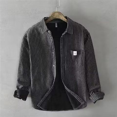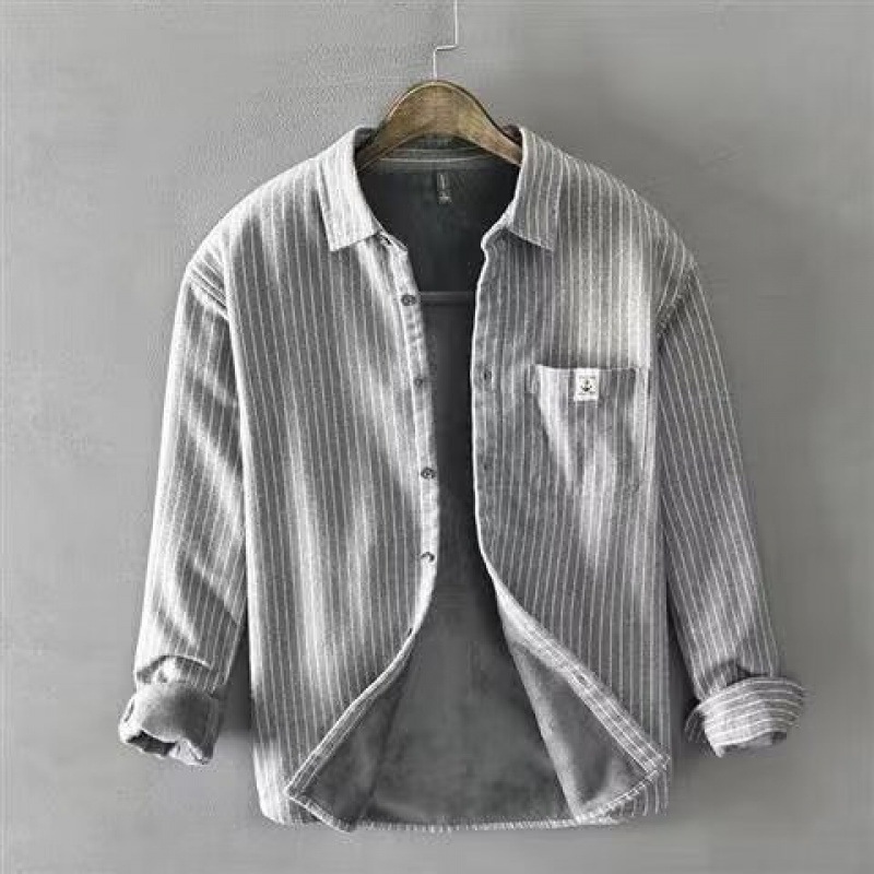남자 기모 옷깃 긴팔 셔츠 가을과 겨울 새로운 청소년 두꺼운 따뜻한 줄무늬 카디건 셔츠 코트스토어 가기