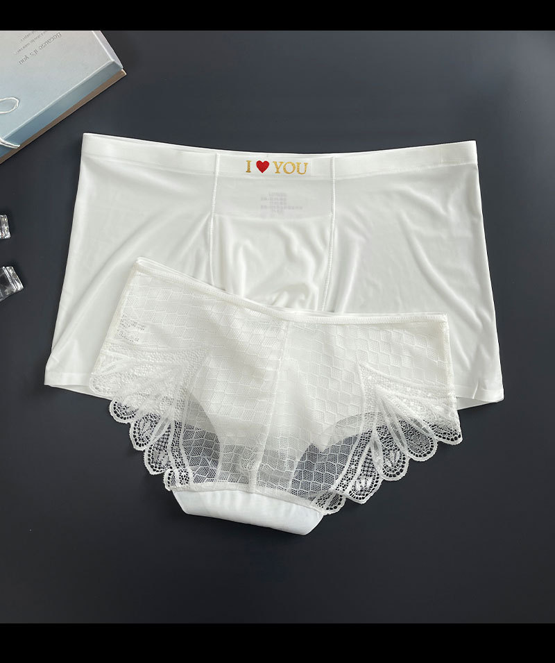 커플 속옷 한 남자와 한 여자 아이스 실크 라이트 럭셔리 세트 섹시한 원활한 흰색 레이스 선물 상자 얇은 발렌타인 데이