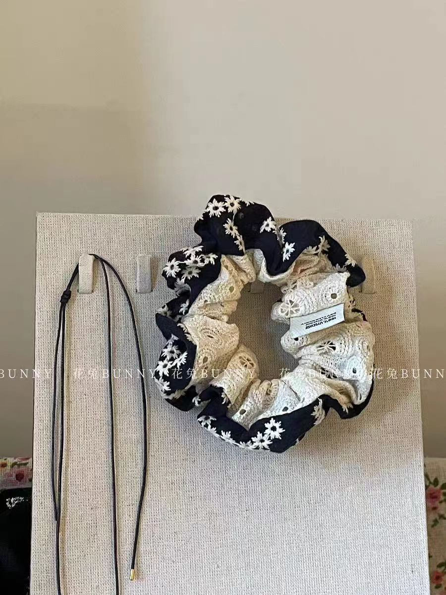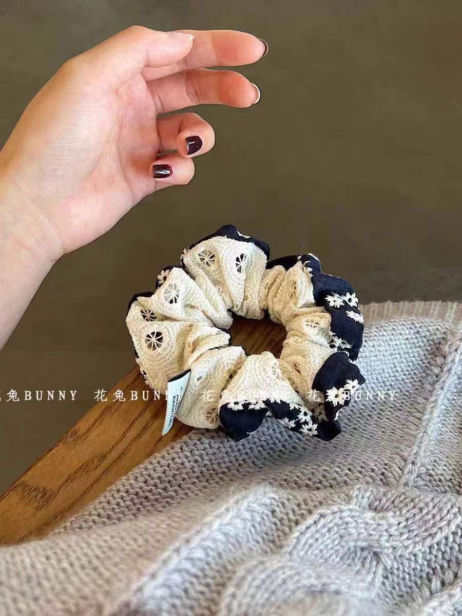 샤넬 스타일, 수제 자수 레이스 꽃 대장 헤어 밴드 복고풍 달콤한 헤어 액세서리 넥타이 헤어 로프 새로운 올 매치