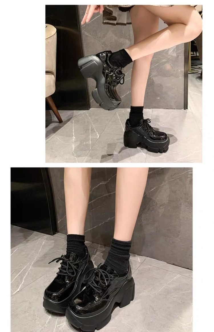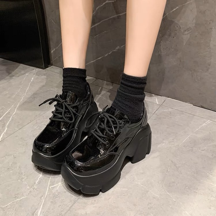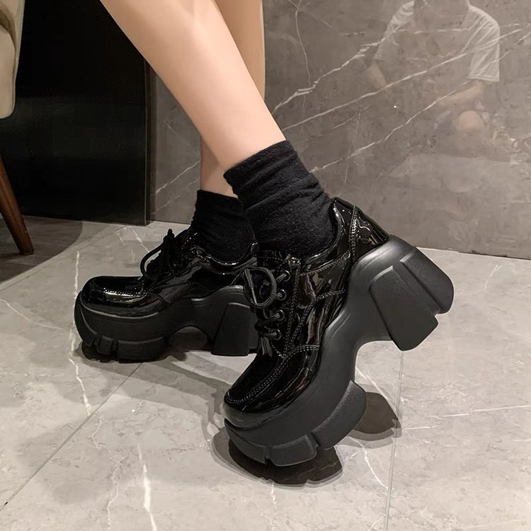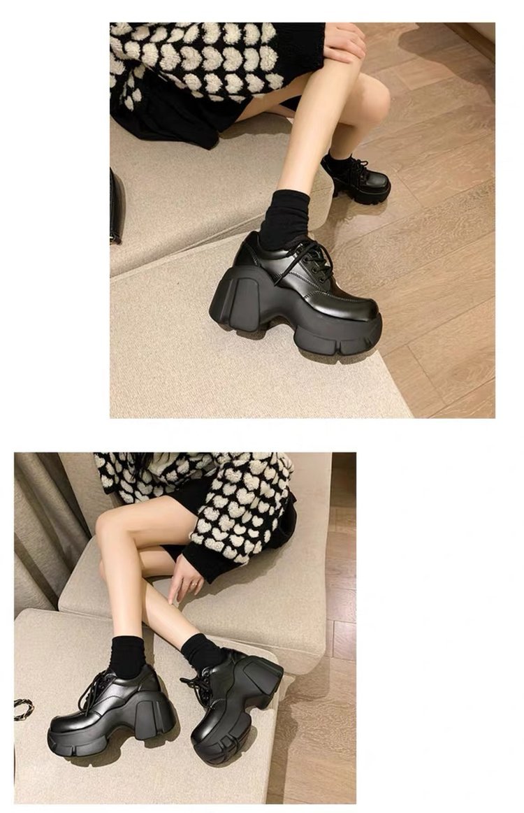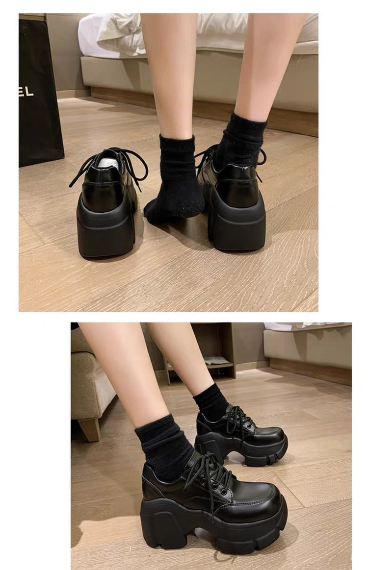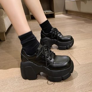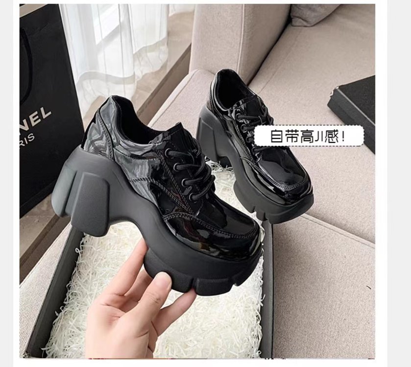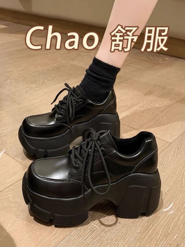 여성용 작은 가죽 신발 영국 스타일 2024 봄 새로운 스타일 플랫폼 두꺼운 밑창 높이 증가 여성 신발 로퍼 작은 신발스토어 가기