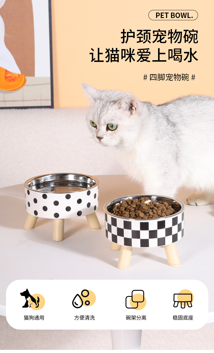 고양이 그릇 안티 노크 스테인레스 스틸 먹이 분지 높은 다리 큰 직경 애완 동물 그릇 개 마시는 그릇 애완 동물 식기 도매스토어 가기