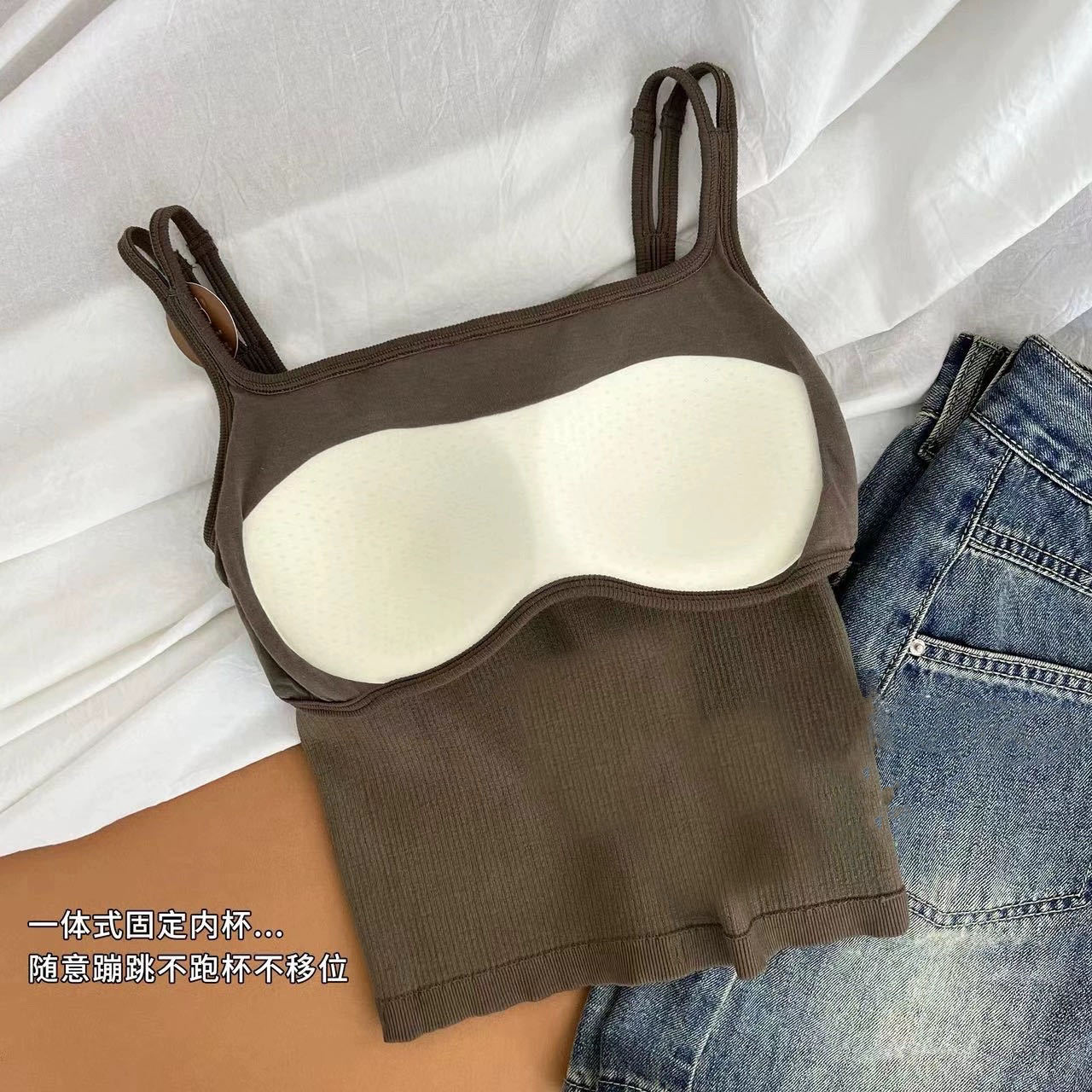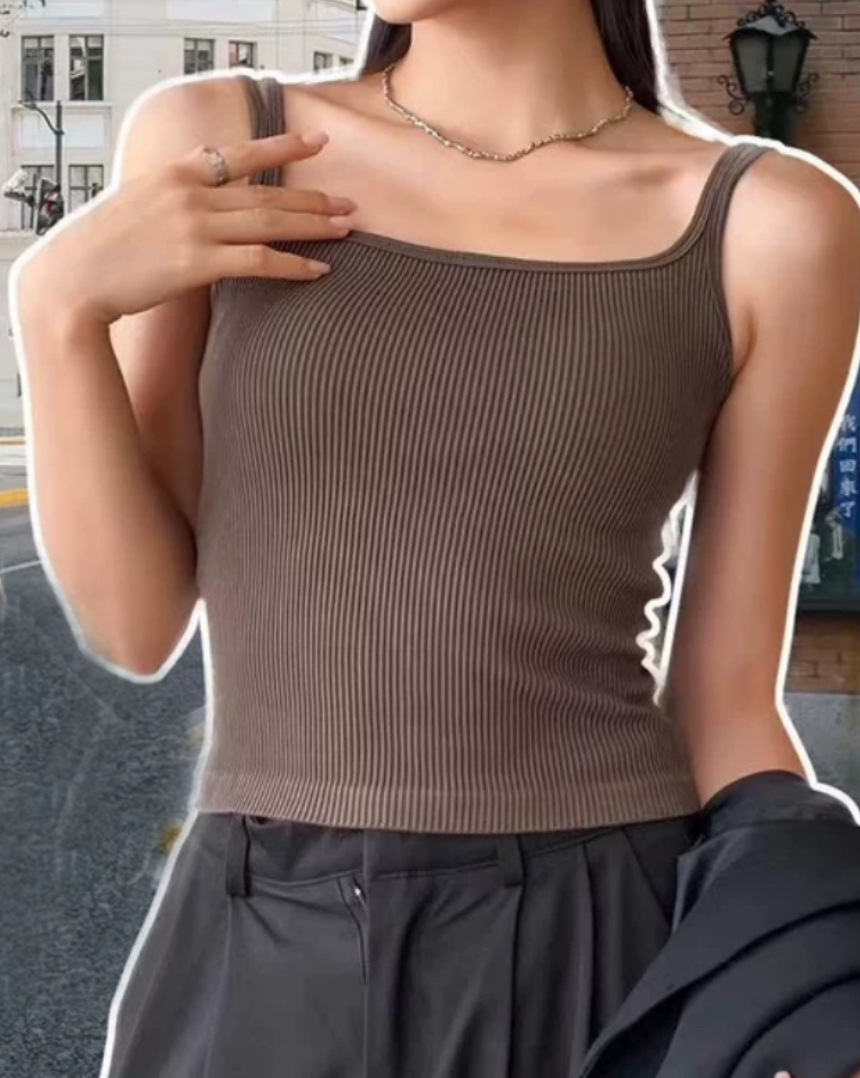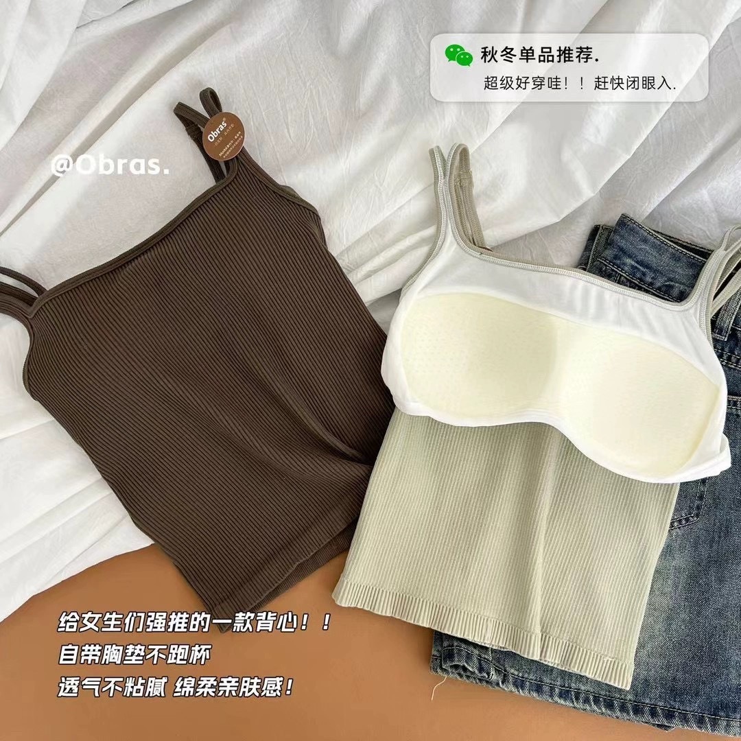 신상 여성용 민소매 탑 2026 여름 이너웨어/아우터웨어 섹시 니트 다용도 베이스 셔츠 (가슴 패드 포함)스토어 가기