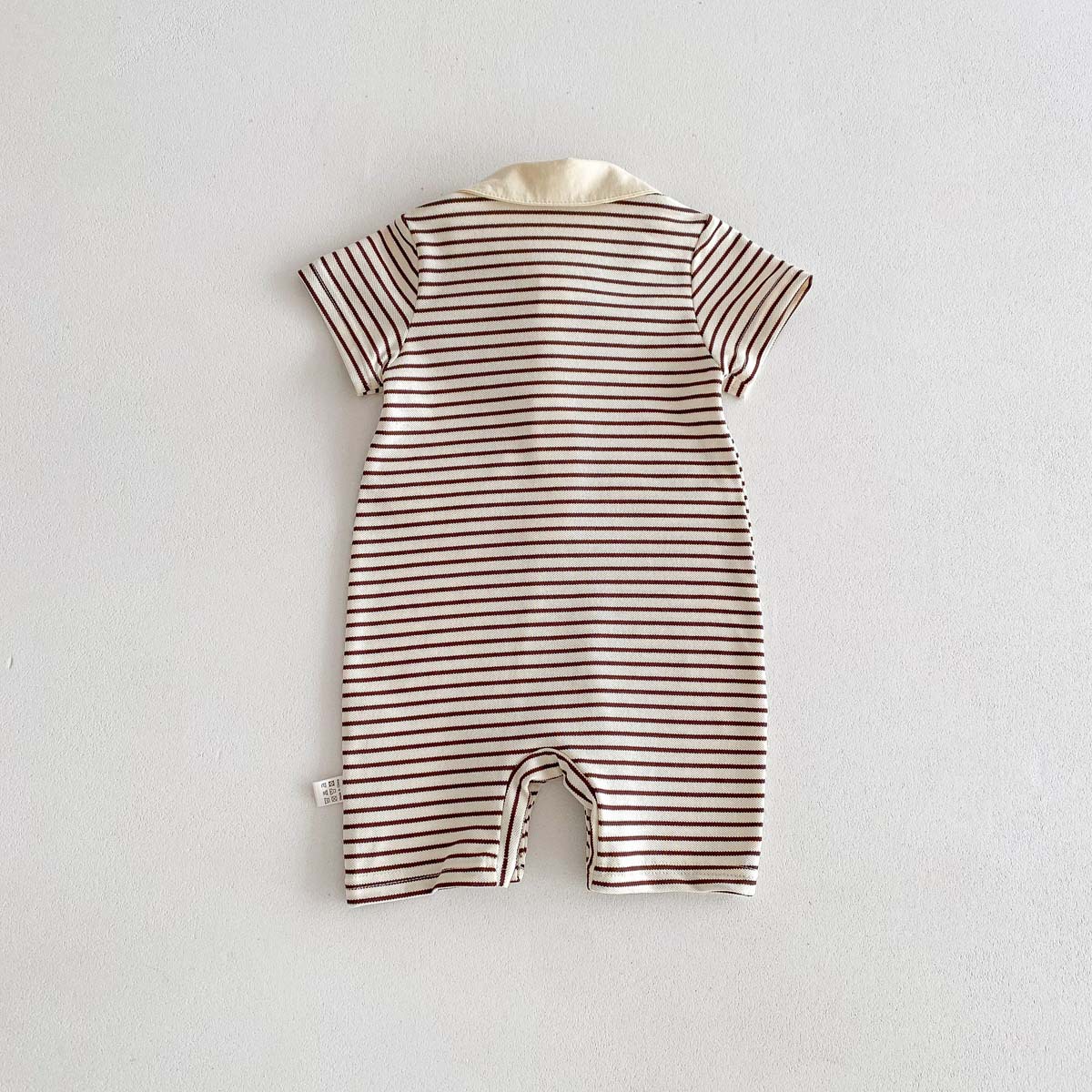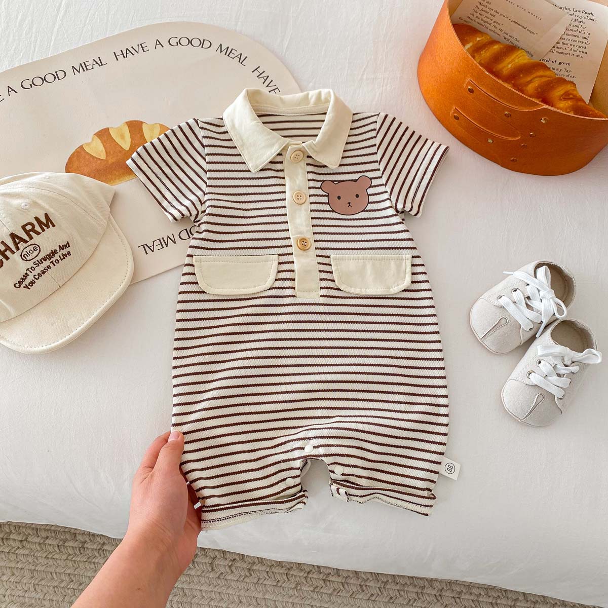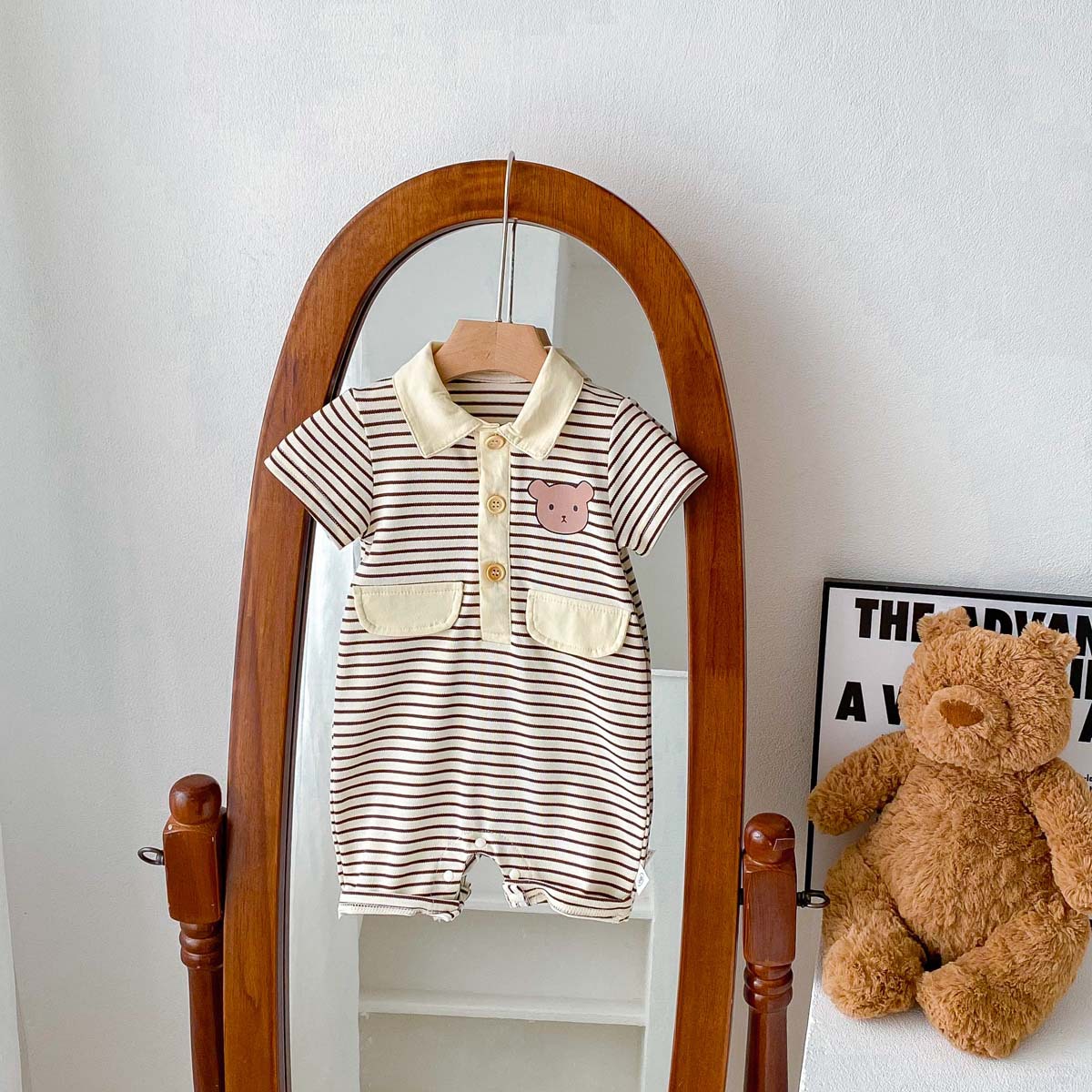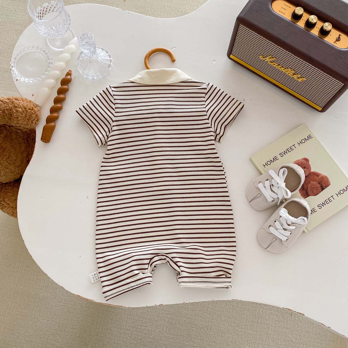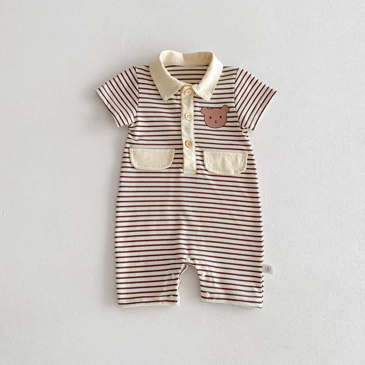여름 한국 스타일 아기 소년 옷 줄무늬 옷깃 가방 romper 신생아 아기 점프 수트 짧은 소매 폴로 롬퍼