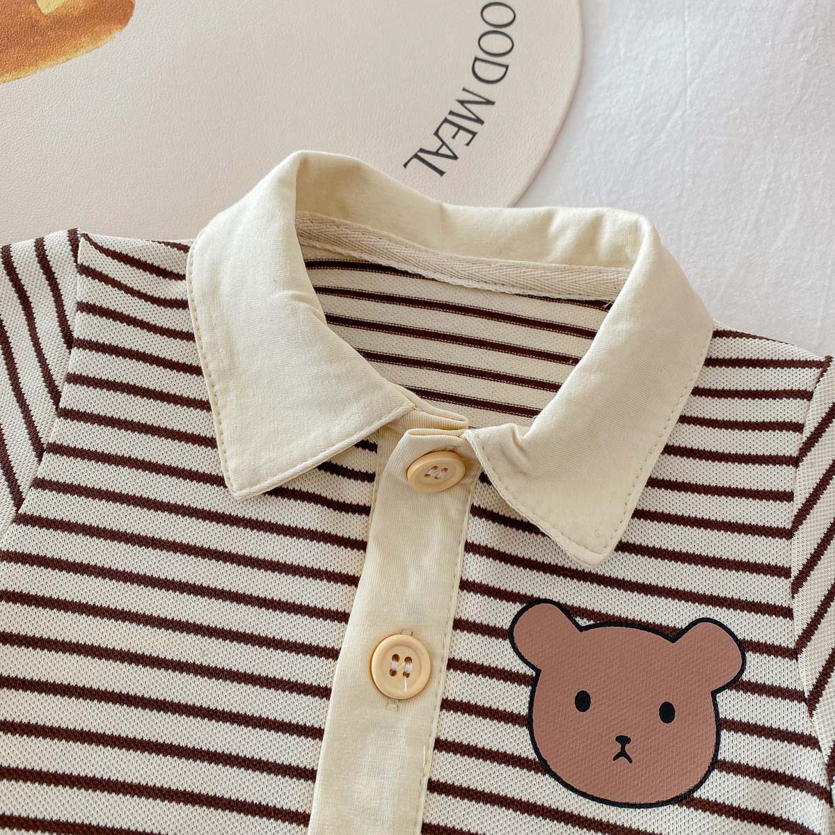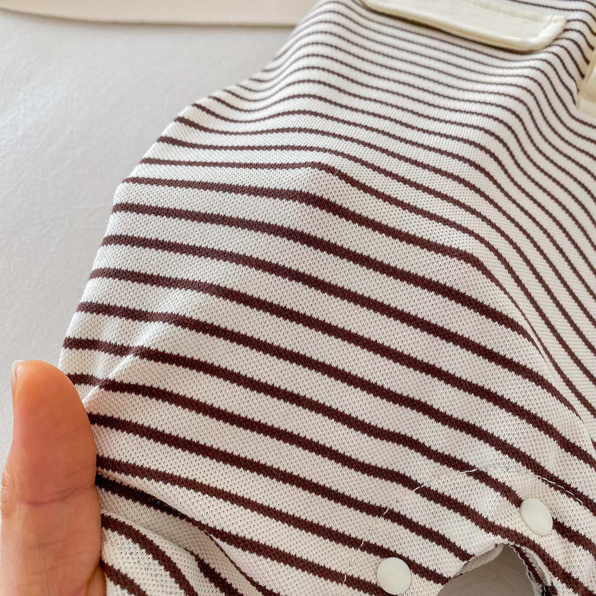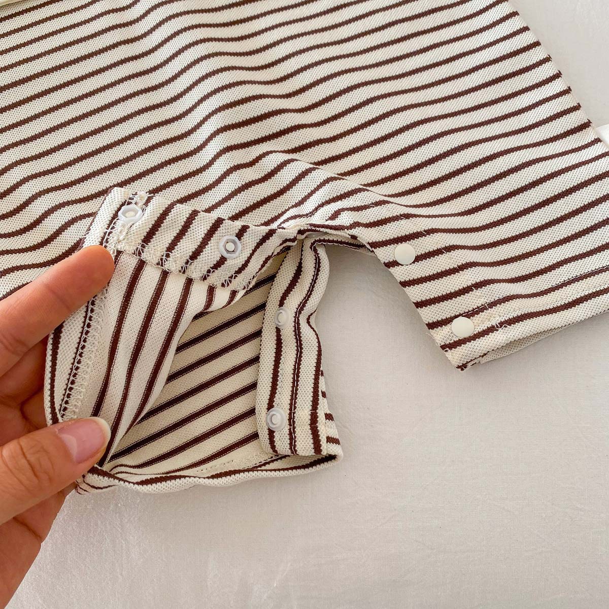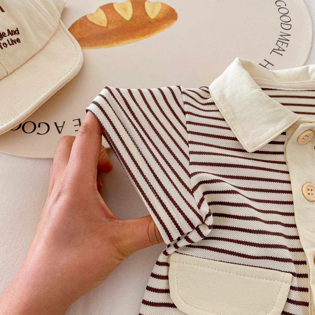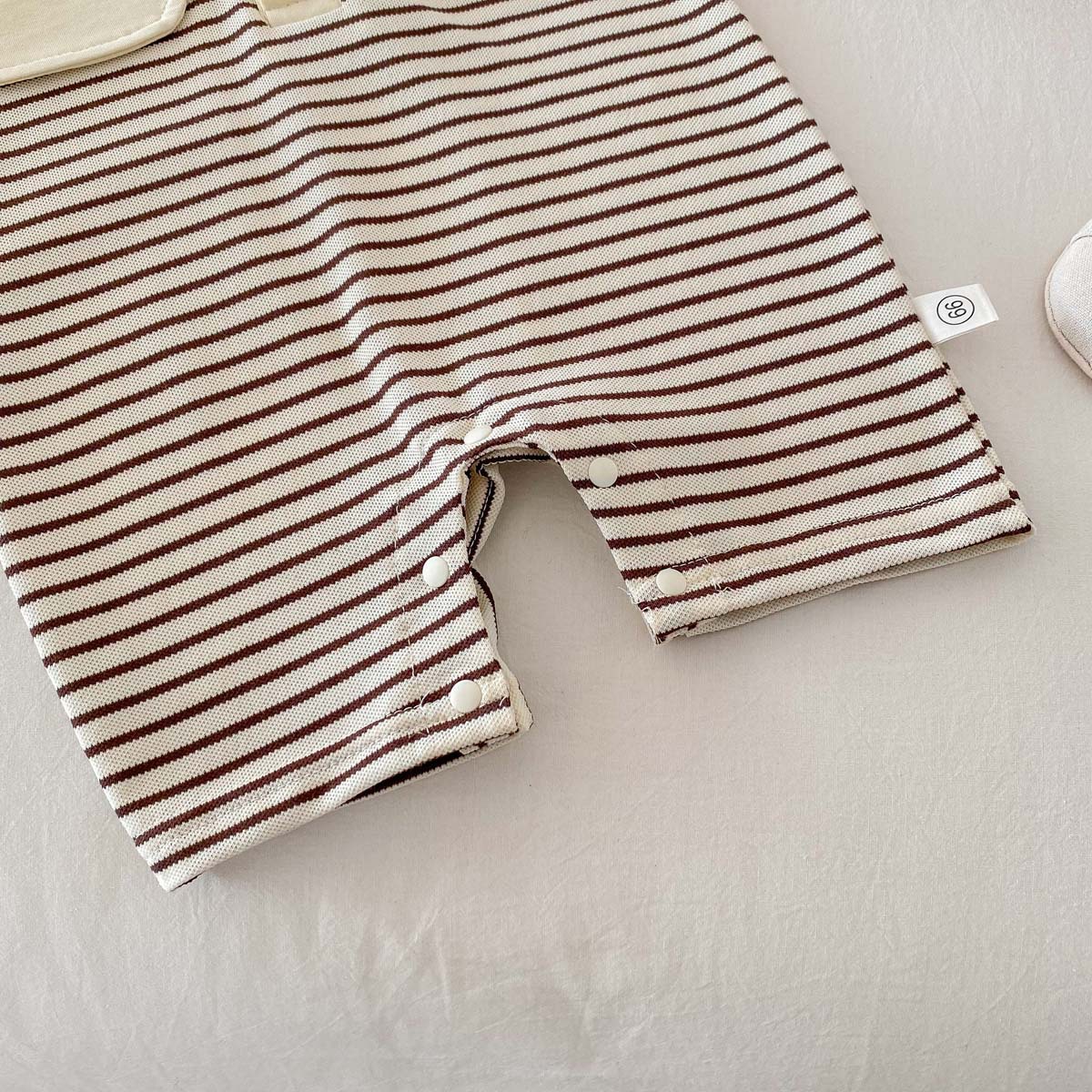여름 한국 스타일 아기 소년 옷 줄무늬 옷깃 가방 romper 신생아 아기 점프 수트 짧은 소매 폴로 롬퍼