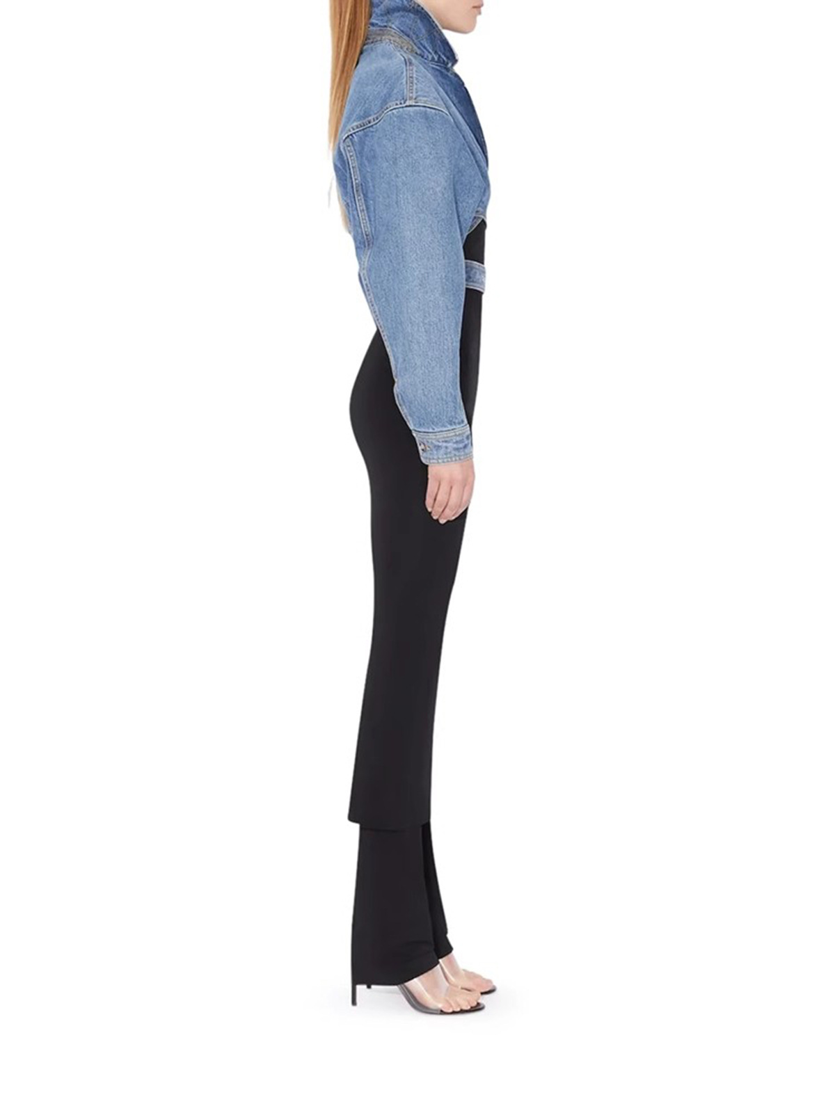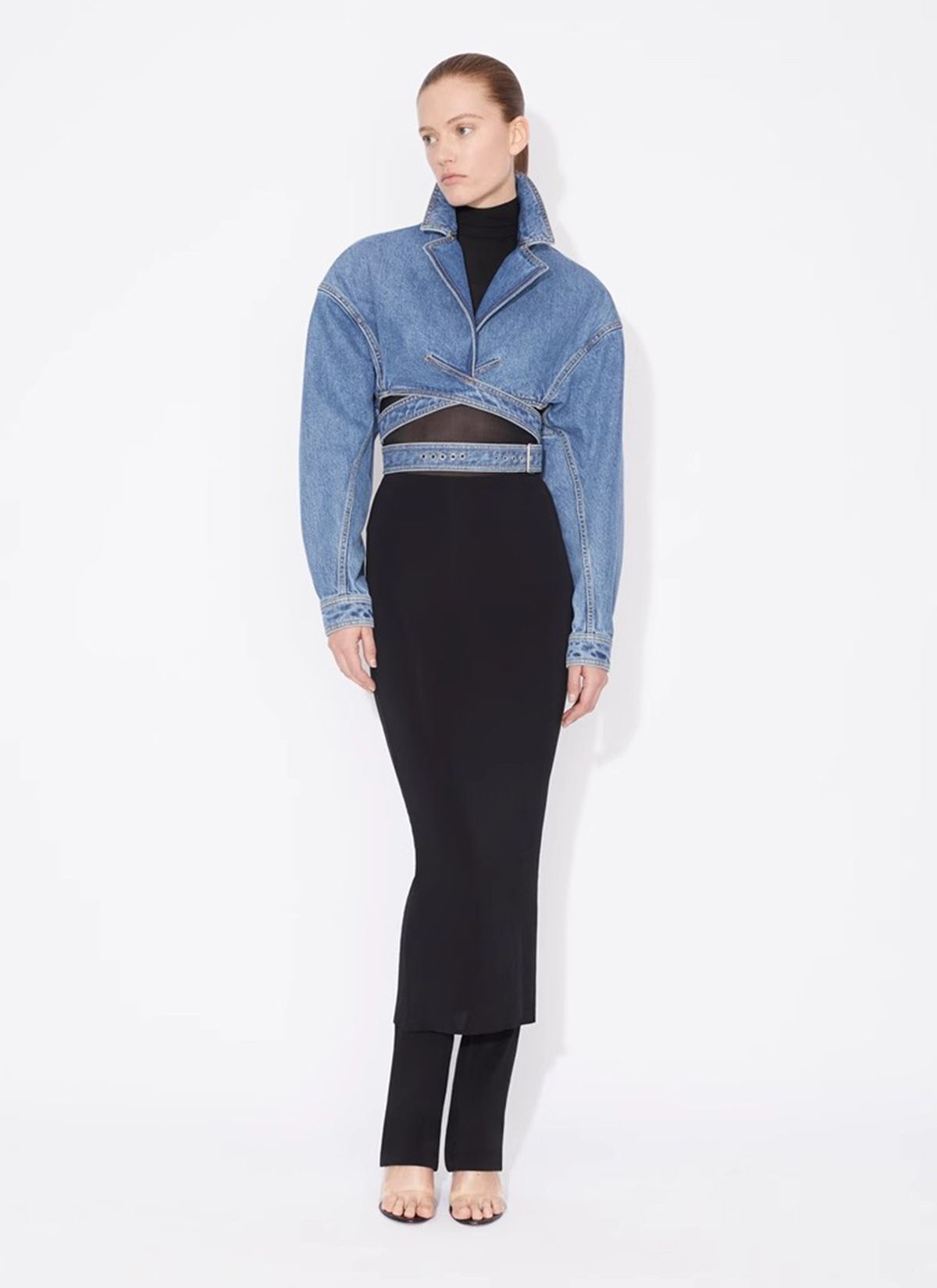 틈새 디자인 센스 탑 코트 2024 봄 크로스 폴드 천공 빈 허리 레이스 업 짧은 여자 데님 재킷스토어 가기