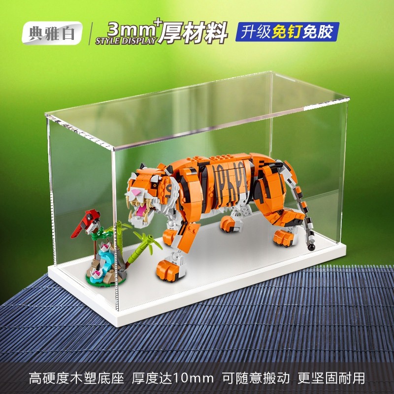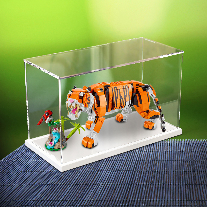 HD 방진 아크릴 31129 년 타이거 마스코트 마이티 타이거 빌딩 블록 조립 모델 디스플레이 스토리지 박스