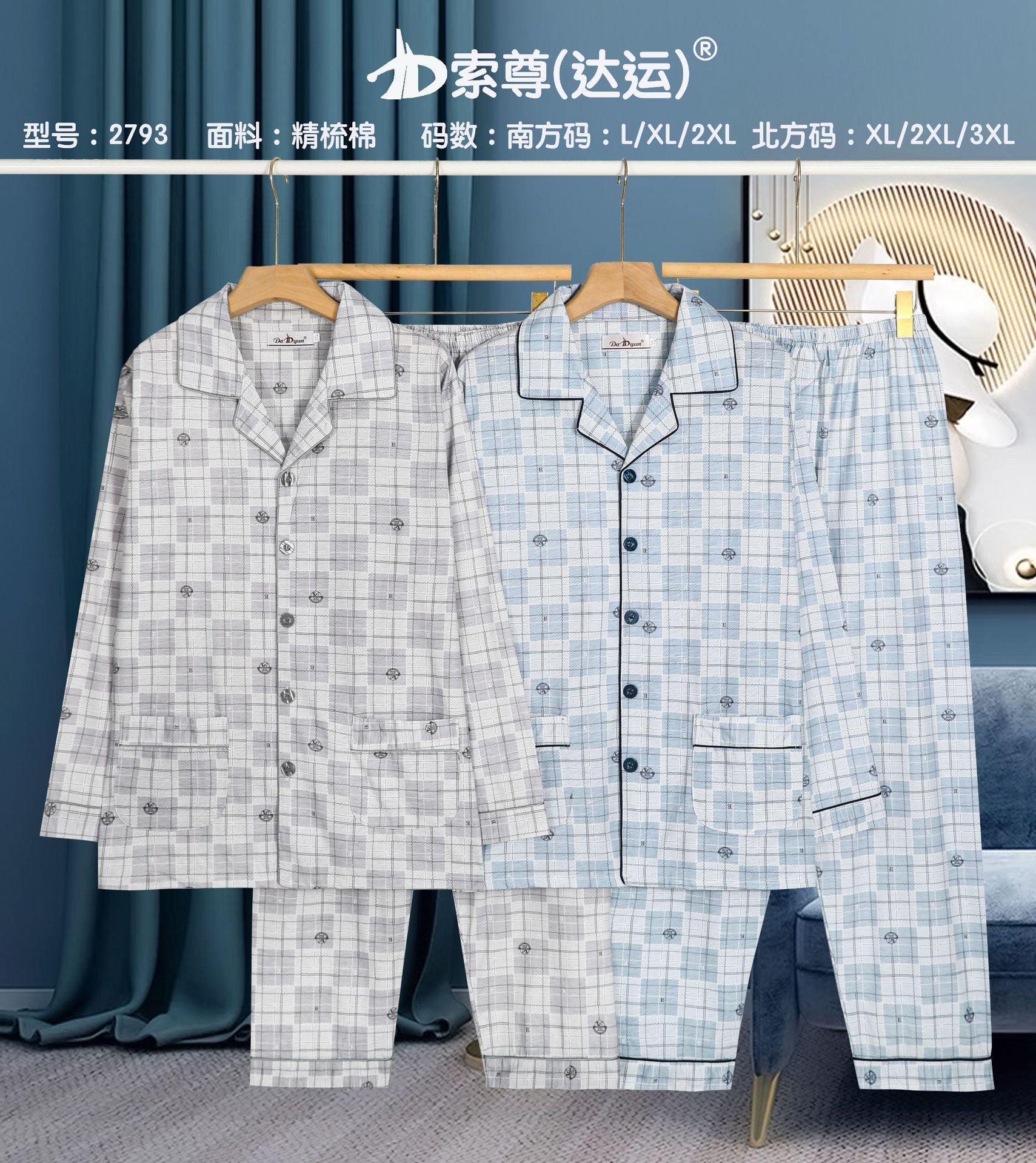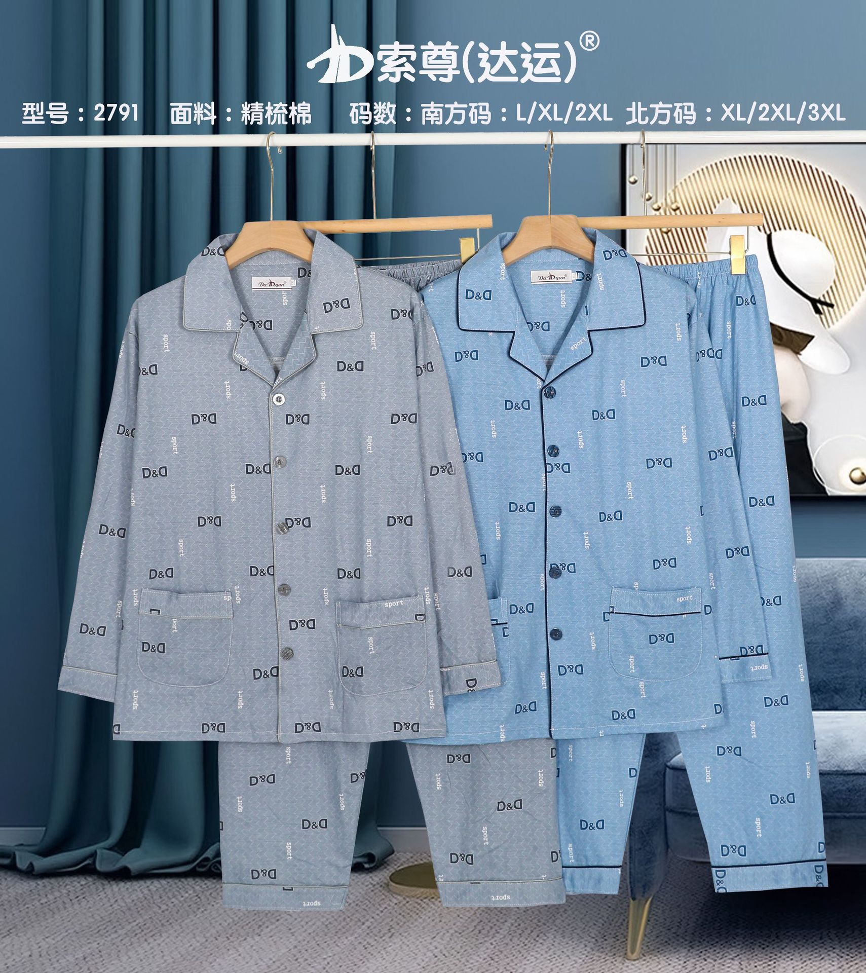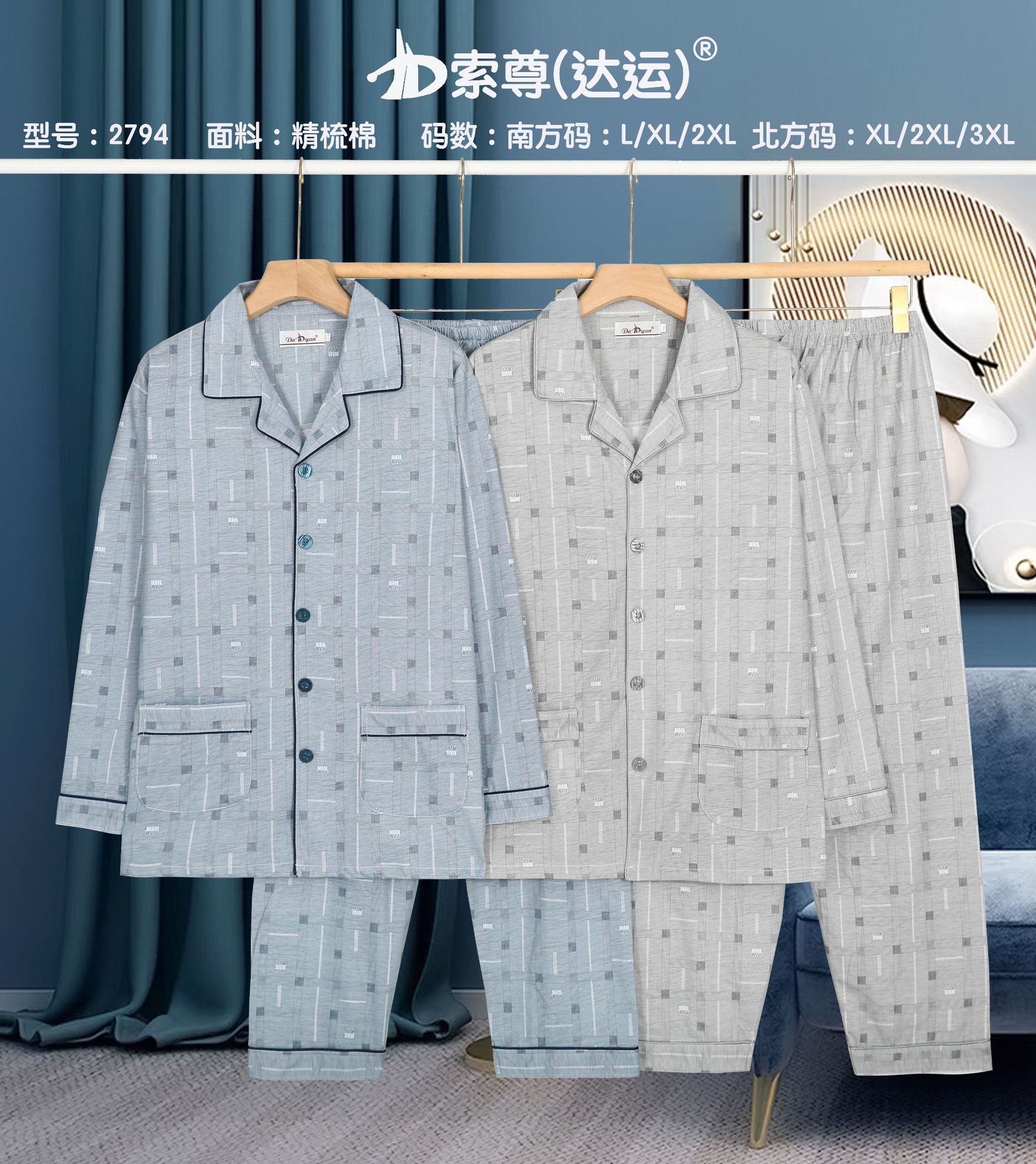 다윤 남성용 빗질면 잠옷 남성용 긴팔 봄 · 가을 남성용 젊은 · 중년 캐주얼 편안한 홈웨어 세트
