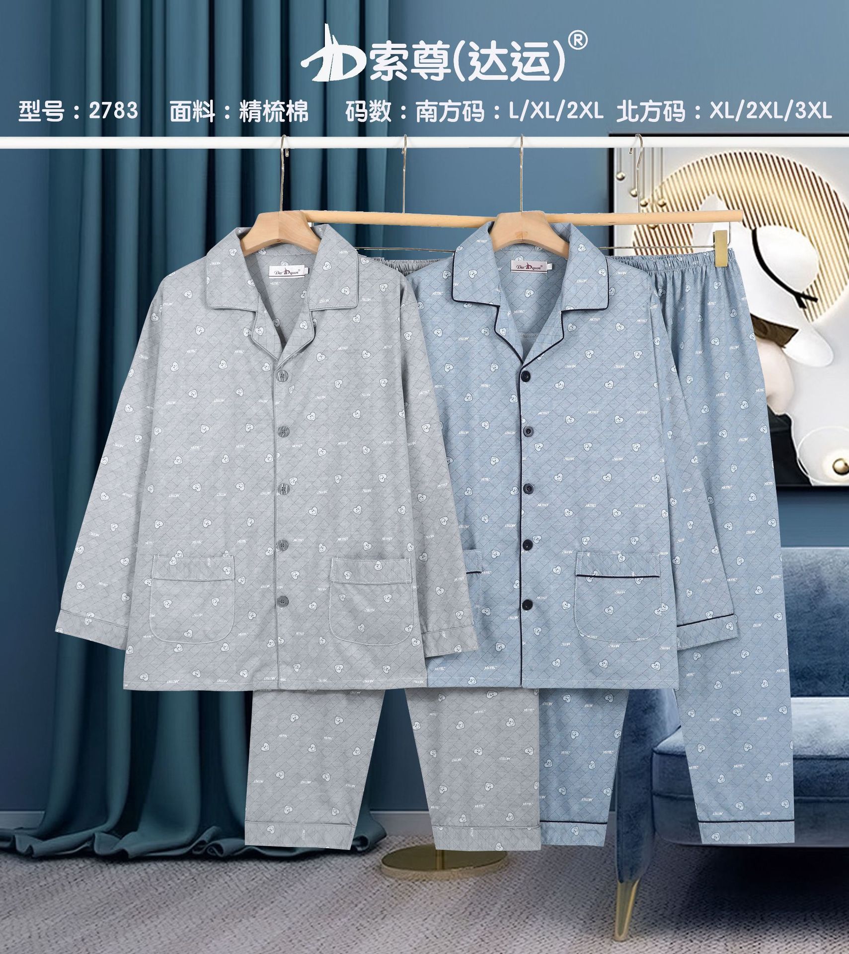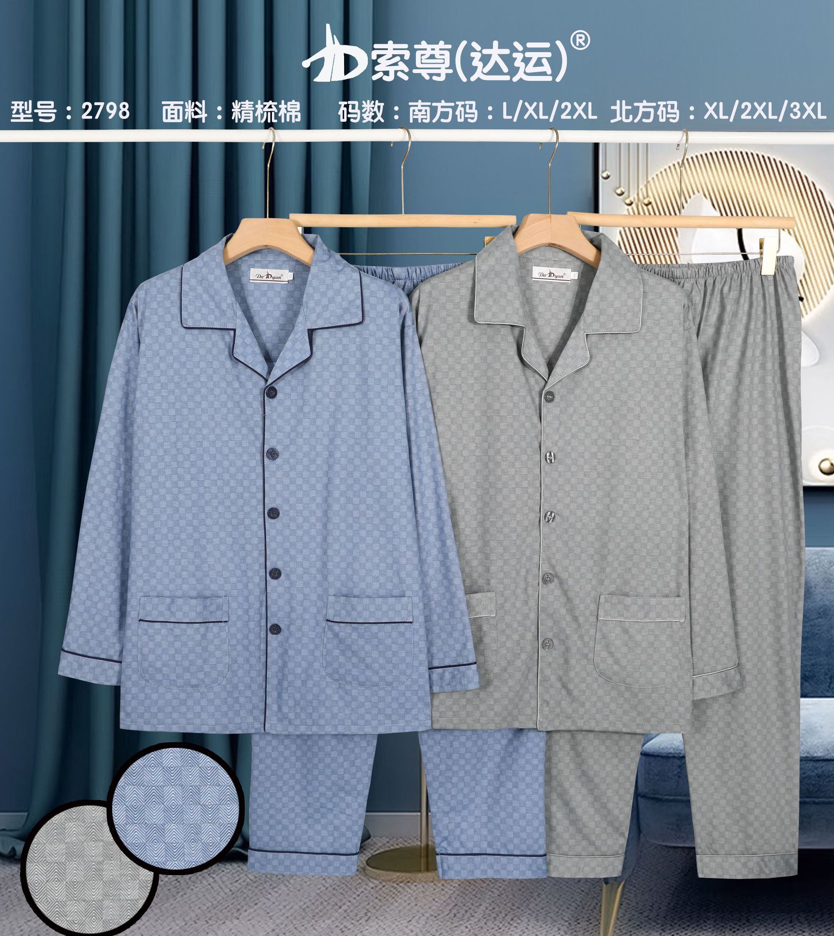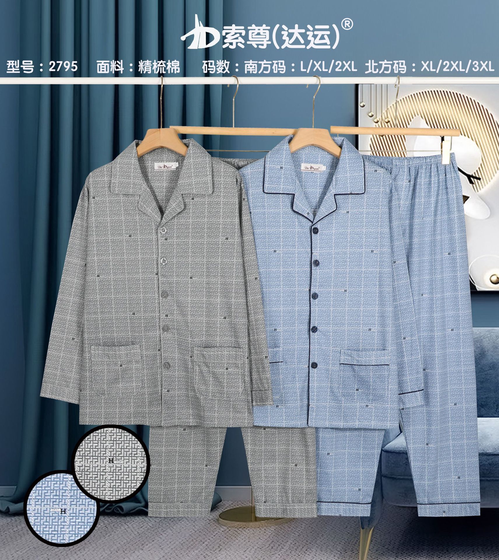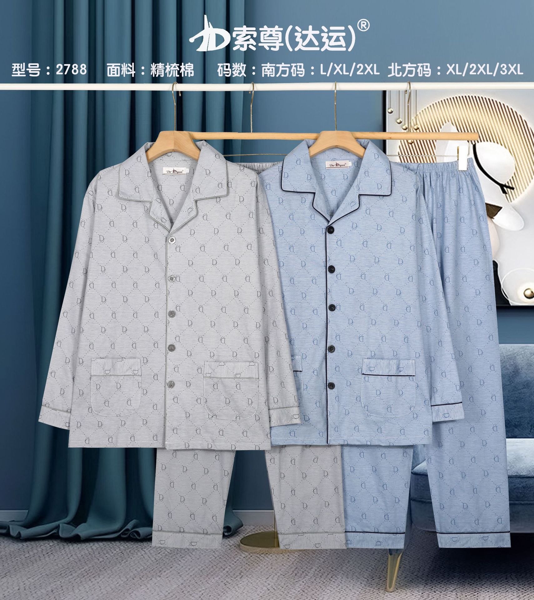 다윤 남성용 빗질면 잠옷 남성용 긴팔 봄 · 가을 남성용 젊은 · 중년 캐주얼 편안한 홈웨어 세트스토어 가기