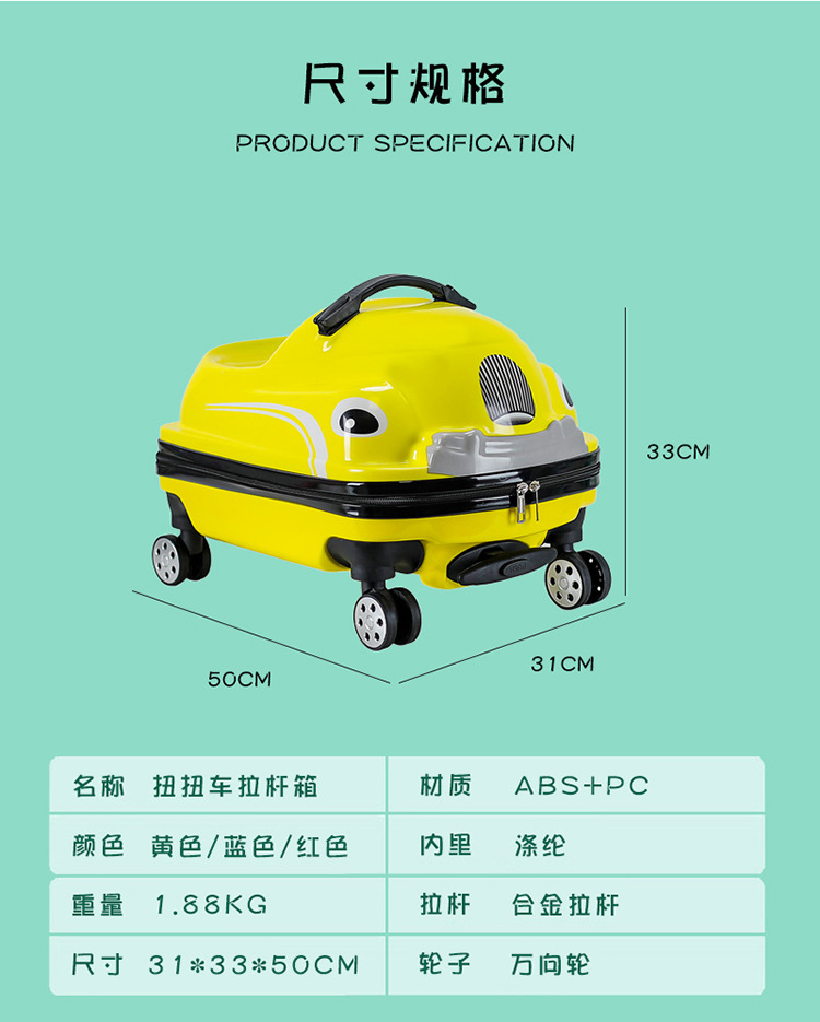 고급 두꺼운 소재 어린이용 앉을 수 있는 트롤리 캐리어, 회전 바퀴 여행 가방, 3-in-1 유모차형 캐리어