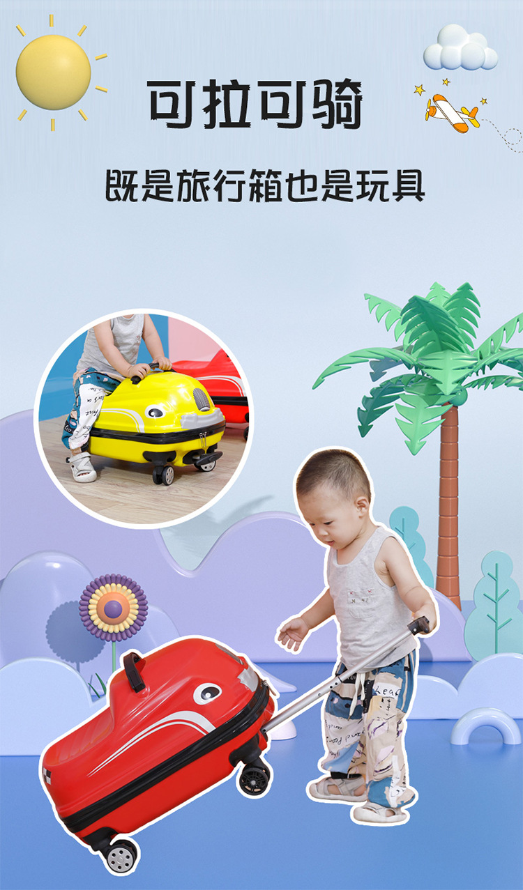 고급 두꺼운 소재 어린이용 앉을 수 있는 트롤리 캐리어, 회전 바퀴 여행 가방, 3-in-1 유모차형 캐리어스토어 가기