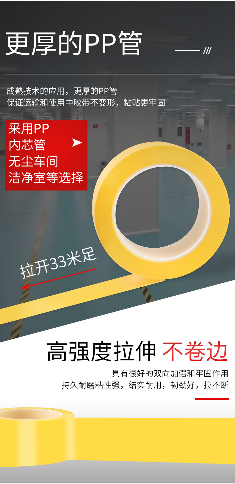 5S 포지셔닝 식별 테이프 공장 작업장 경고 라인 바닥 스티커 플라스틱 코어 노란색 PVC 경고 테이프스토어 가기