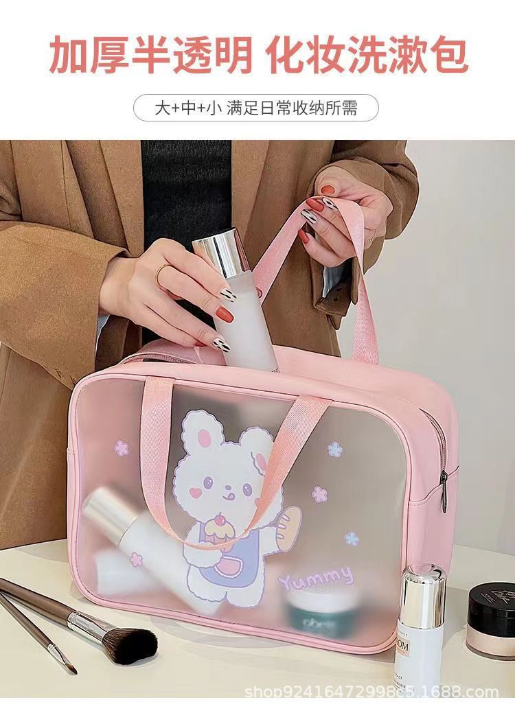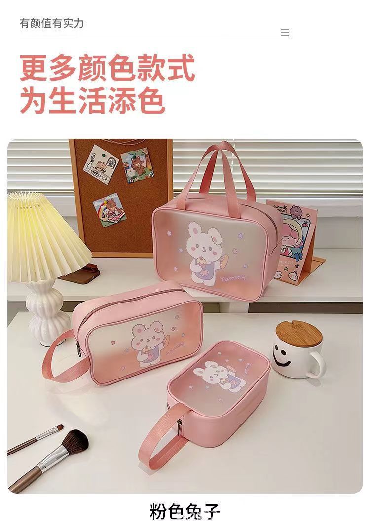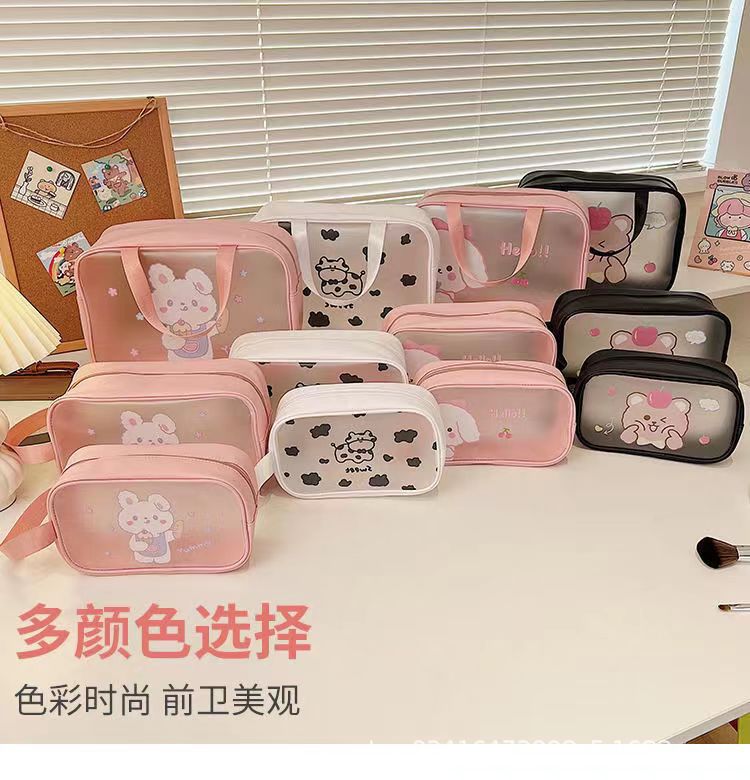 대형 용량 귀여운 고가의 만화 소녀 워시 백 보관 가방 3 피스 세트 인쇄 두꺼운 화장품 가방 휴대용스토어 가기