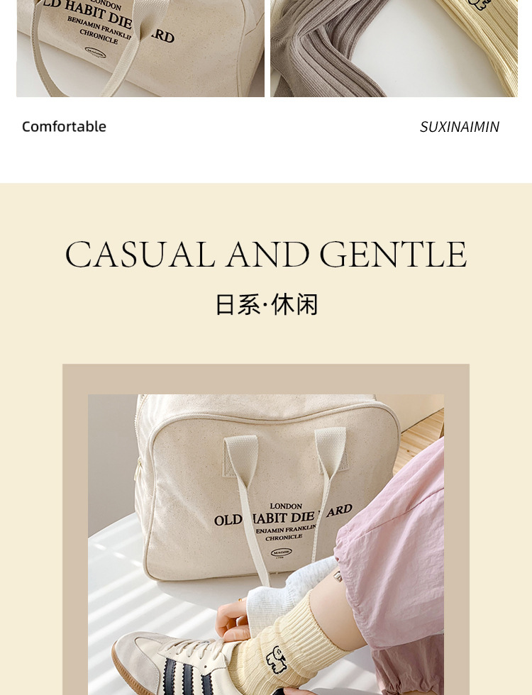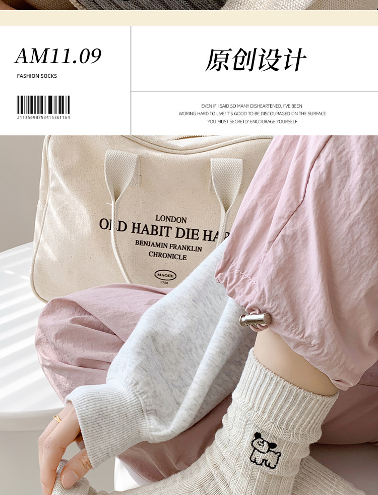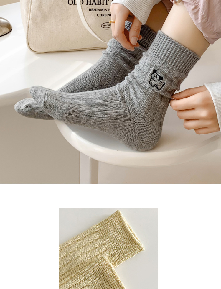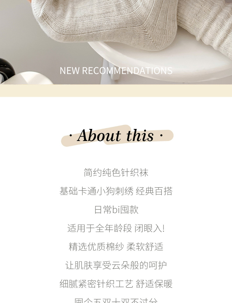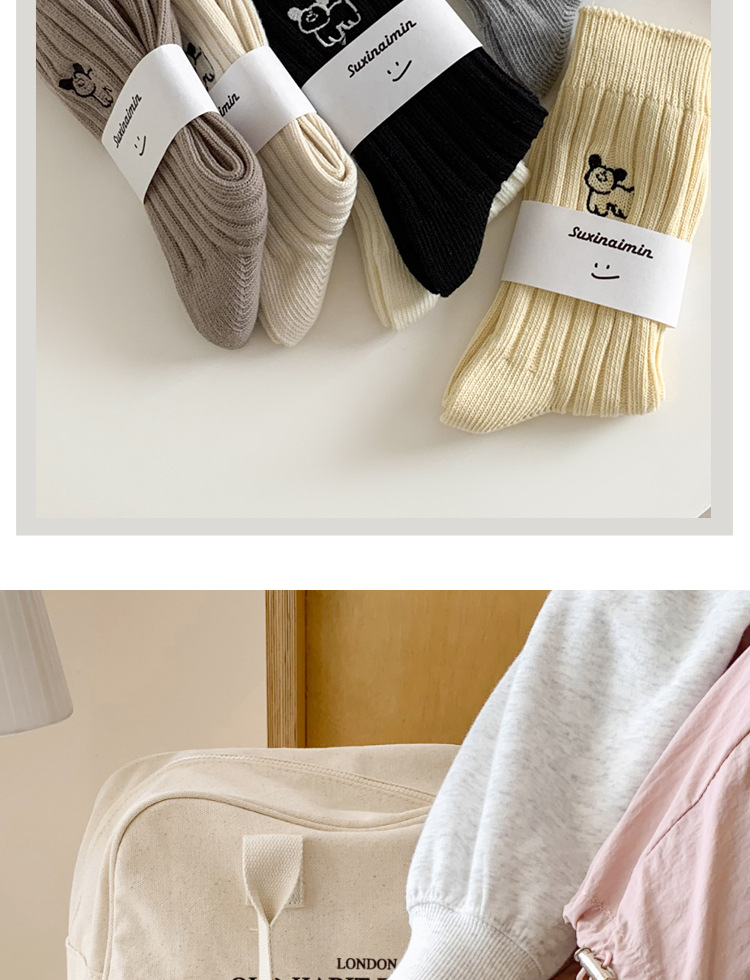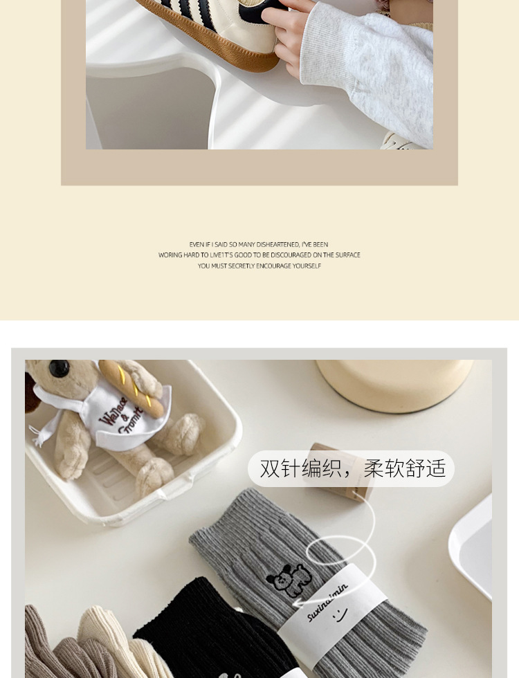 수시나이민 양말 여성 봄 · 가을 수놓은 강아지 중간배럴 이중바늘 한국 동대문 수직 줄무늬 더미 양말