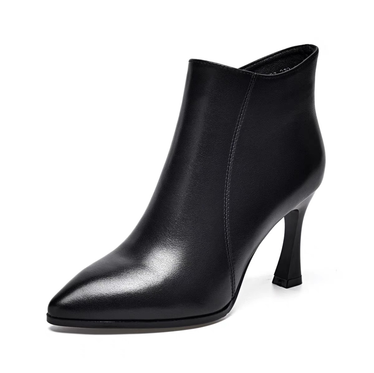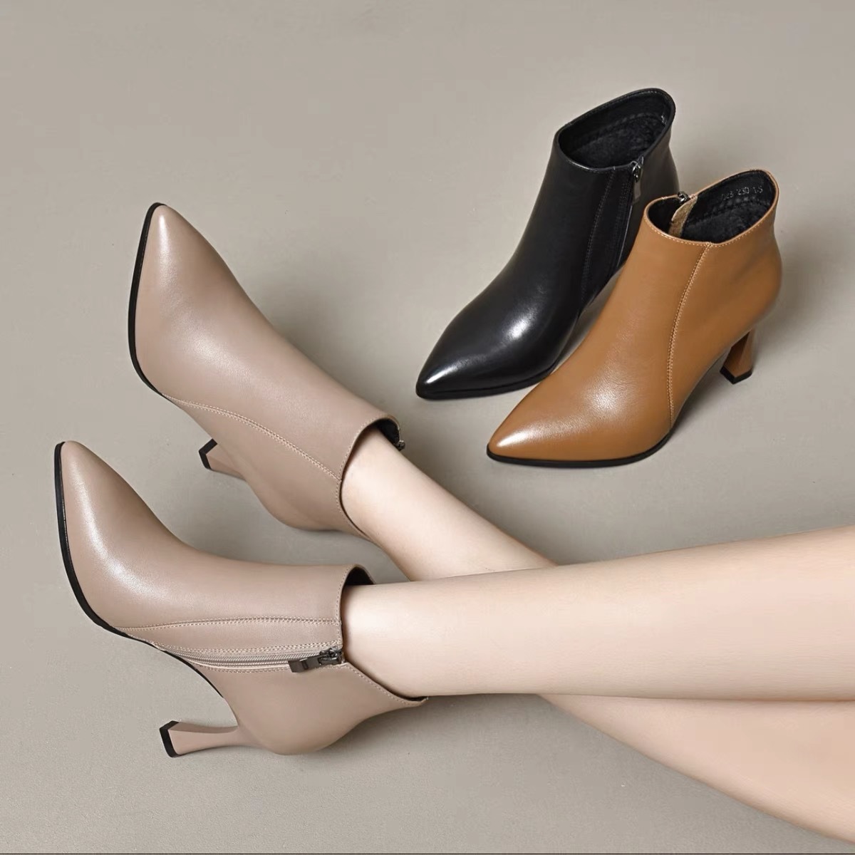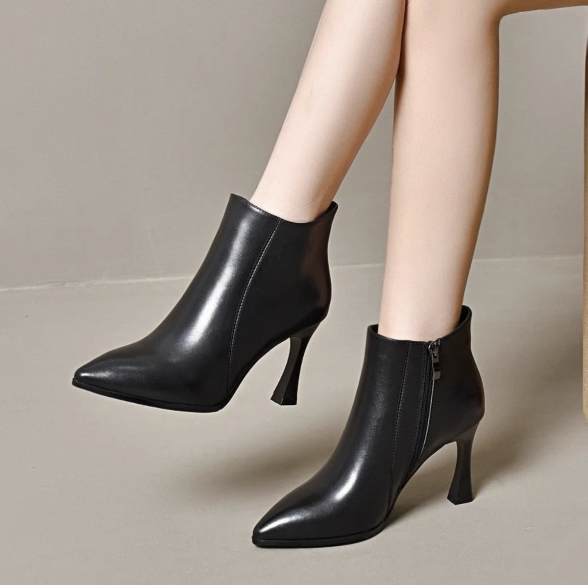 뾰족코 숏부츠 여성 미들힐 소프트솔 봄가을 싱글부츠 2024 신상 가을겨울 천연가죽 앵클부츠 플러스벨벳 하이힐스토어 가기