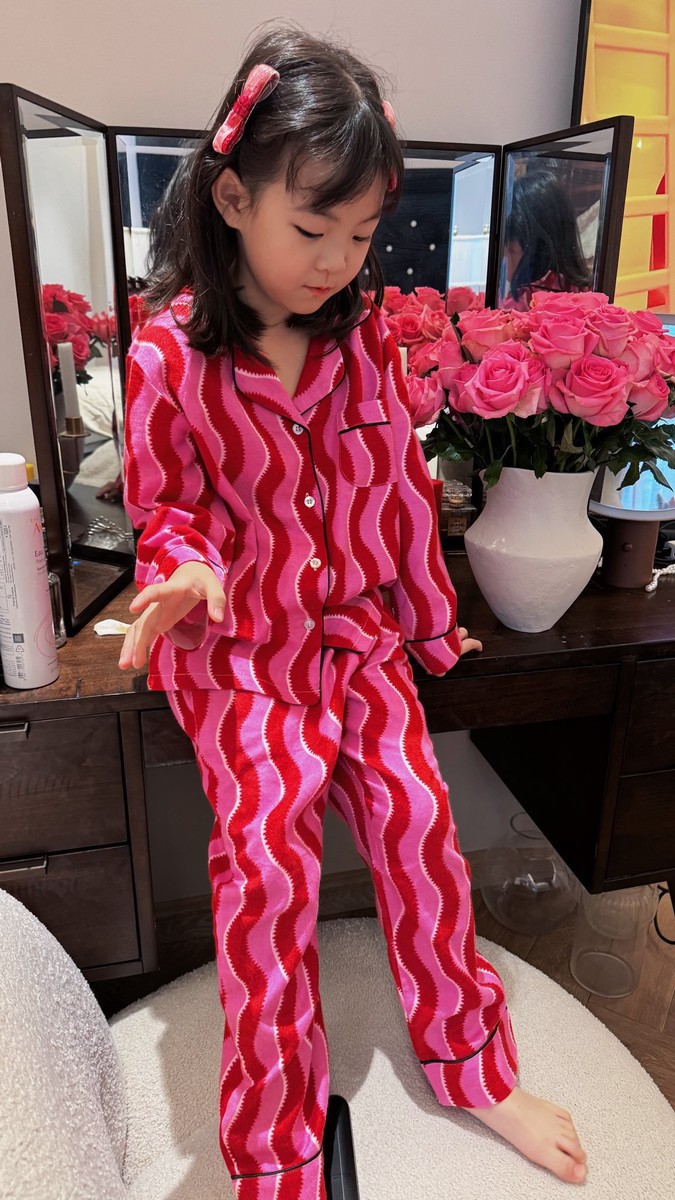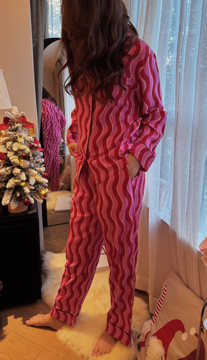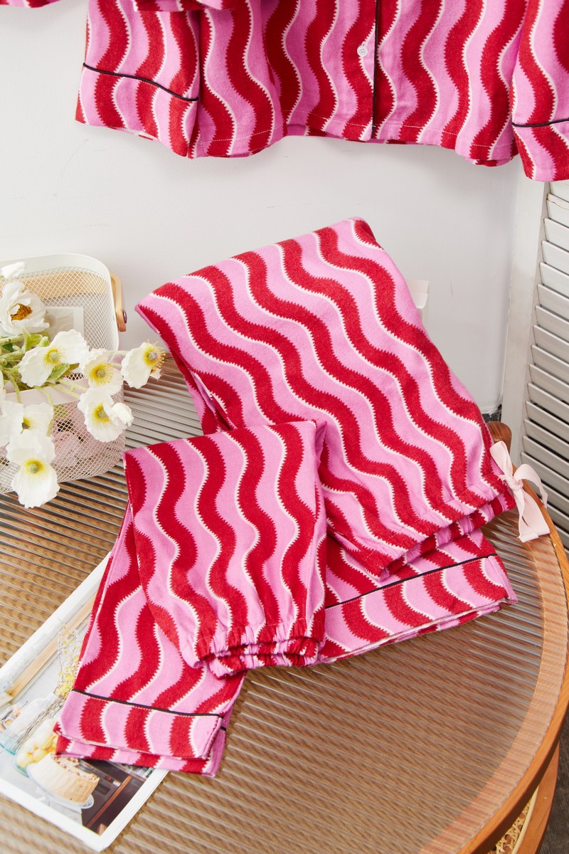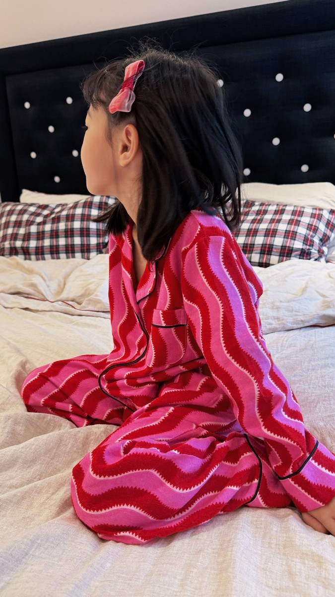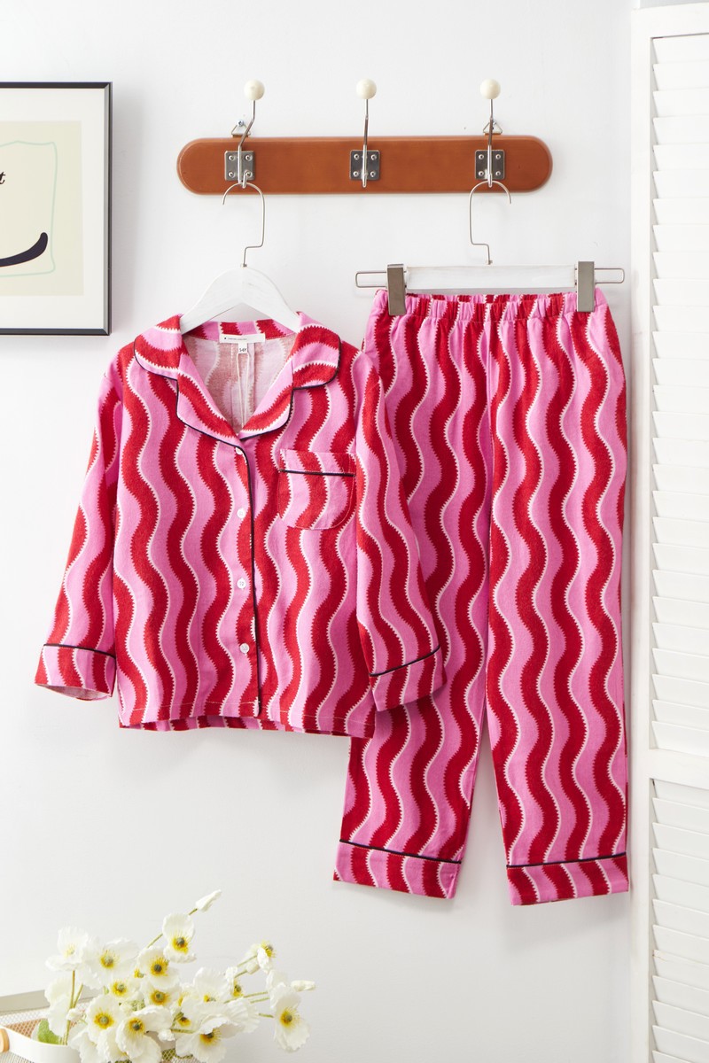 새해 크리스마스 시리즈 대나무 섬유 칫솔질 부모-자식 가정복 잠옷 세트 웨이브 리본 여성용 긴팔 바지