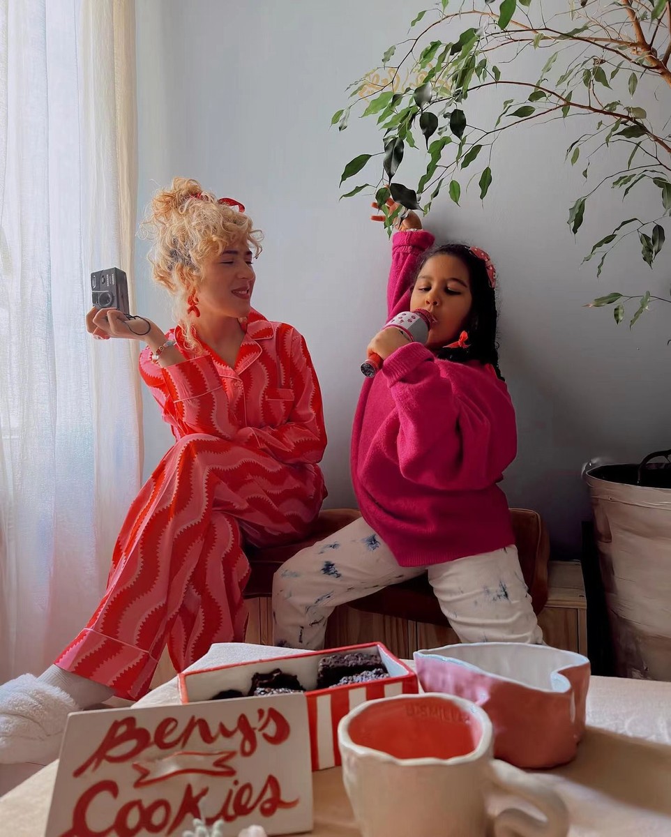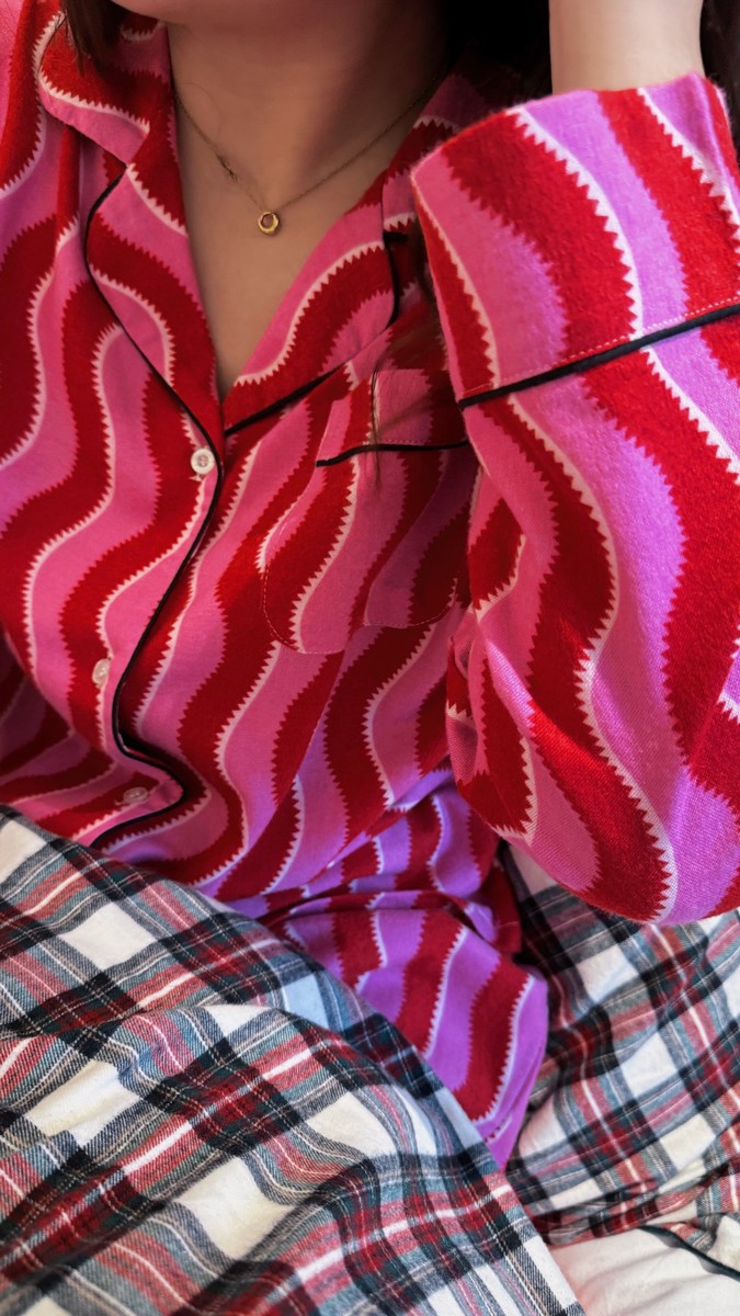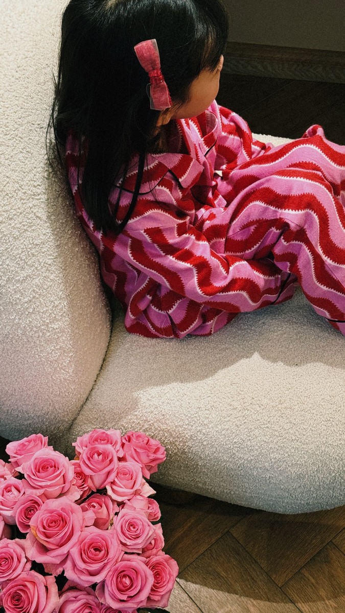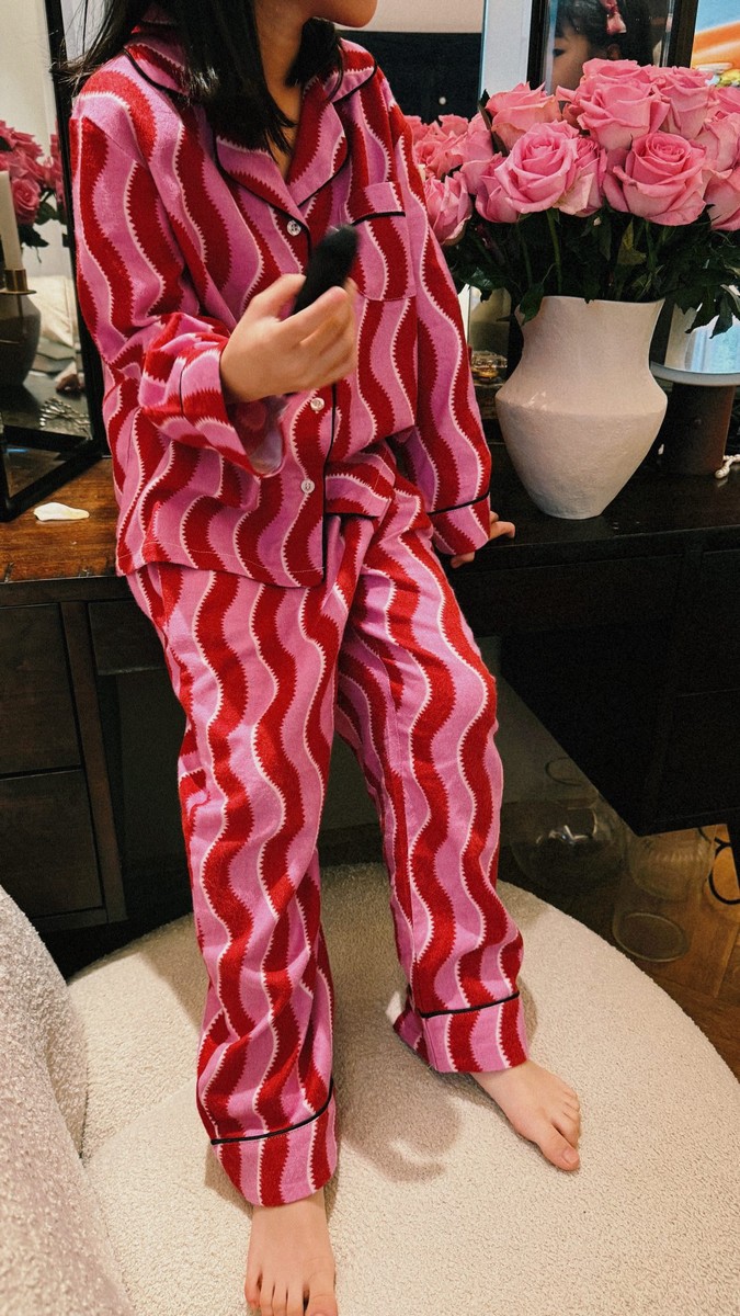 새해 크리스마스 시리즈 대나무 섬유 칫솔질 부모-자식 가정복 잠옷 세트 웨이브 리본 여성용 긴팔 바지