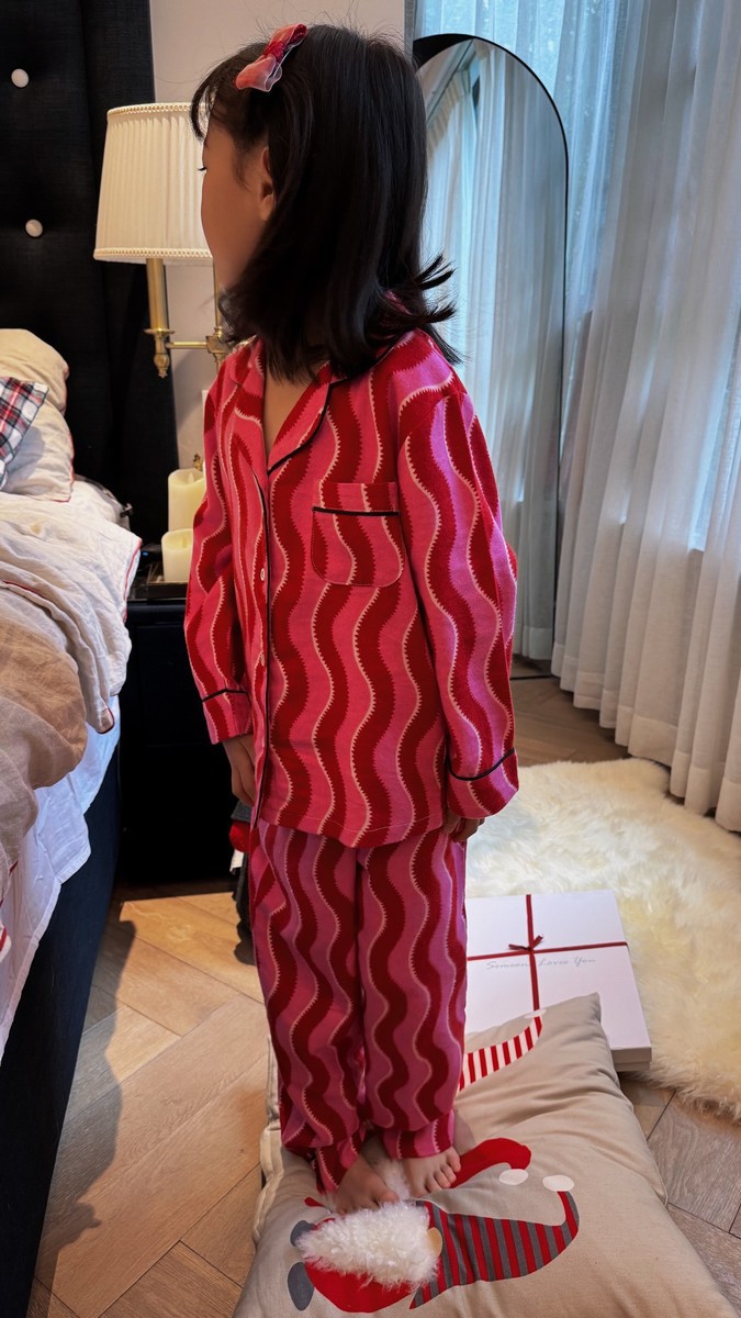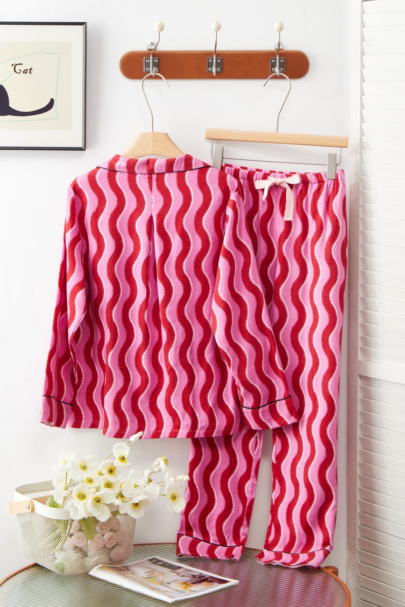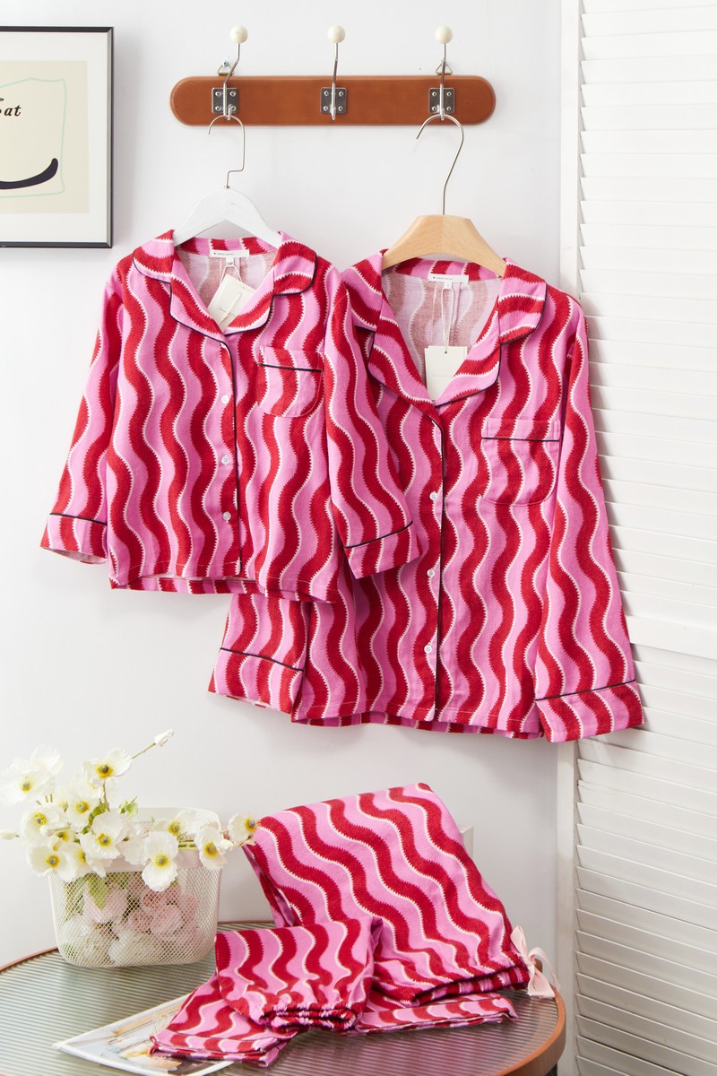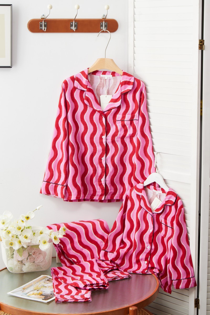 새해 크리스마스 시리즈 대나무 섬유 칫솔질 부모-자식 가정복 잠옷 세트 웨이브 리본 여성용 긴팔 바지스토어 가기