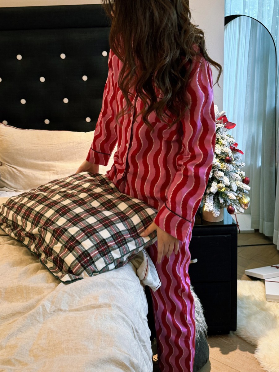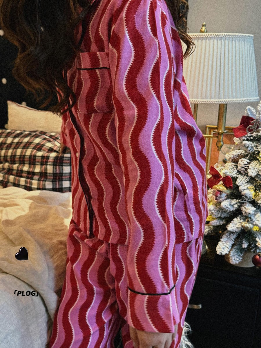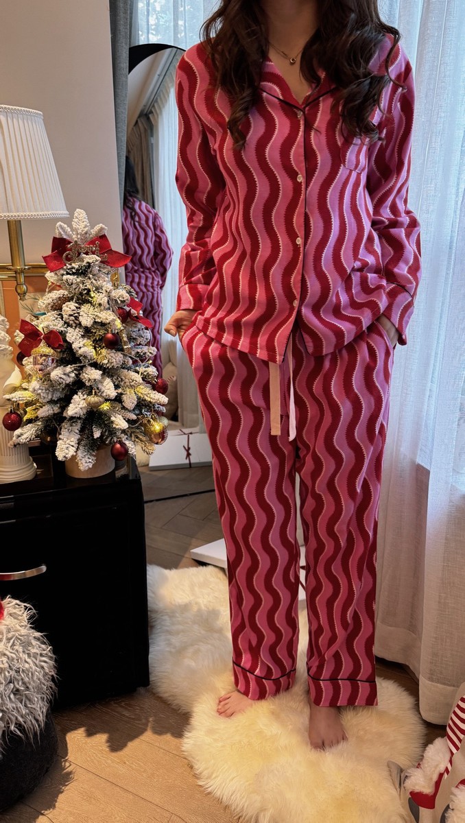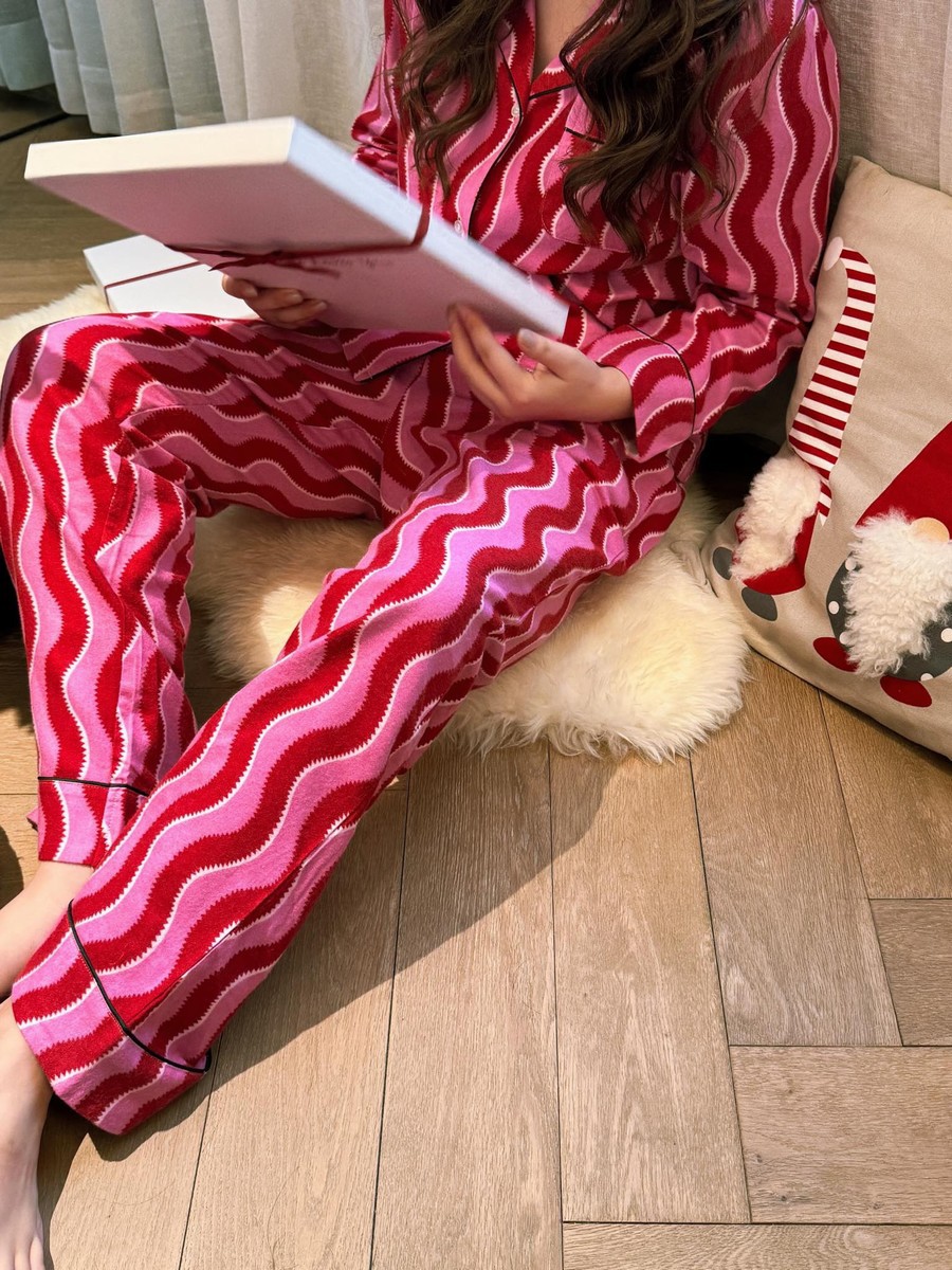 새해 크리스마스 시리즈 대나무 섬유 칫솔질 부모-자식 가정복 잠옷 세트 웨이브 리본 여성용 긴팔 바지스토어 가기