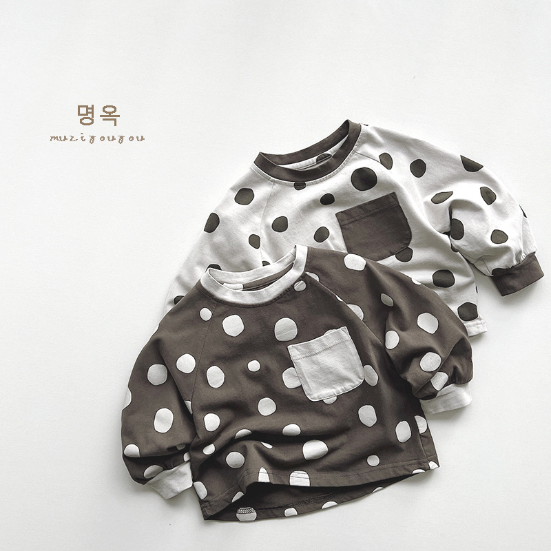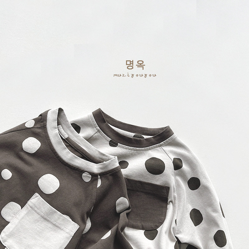 한국 스타일~ 여아용 물방울무늬 티셔츠 2025 봄 신상 남아용 일본식 긴팔 다용도 상의 유아동복 트렌드스토어 가기