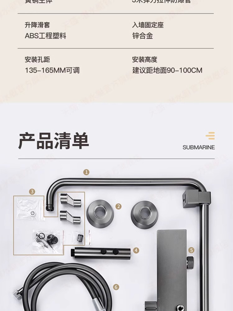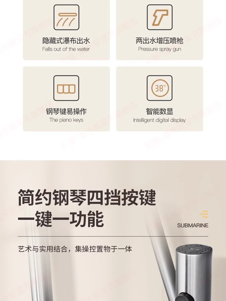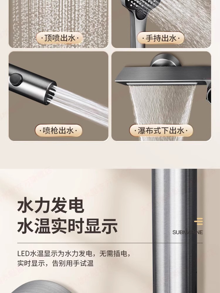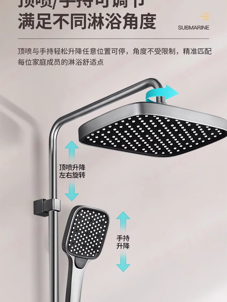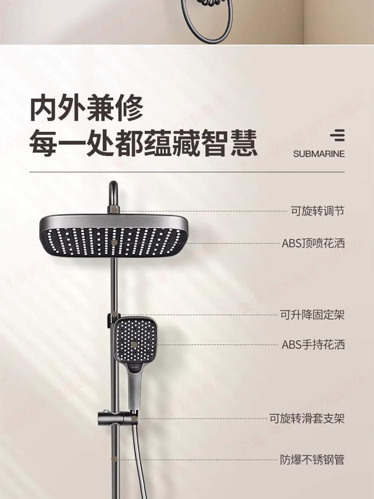 잠수함 피아노 버튼 샤워 가정용 샤워 수도꼭지 스프레이 건 욕실 샤워 헤드 욕실 레인 샤워 세트
