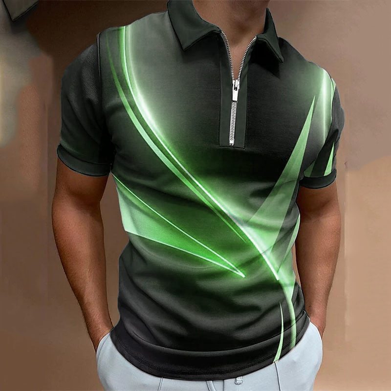 남자 폴로 셔츠 3D 인쇄 거리 매일 반팔 지퍼 폴로 셔츠 캐주얼 통기성 편안한 골프 셔츠스토어 가기