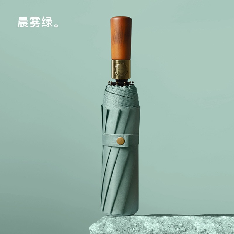 • [아침 안개 그린] 자동 10 골 앞으로 우산 솔리드 우드 핸들