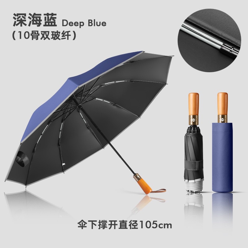 • [다크 블루] 자동 10-뼈 앞으로 우산 단단한 나무 손잡이