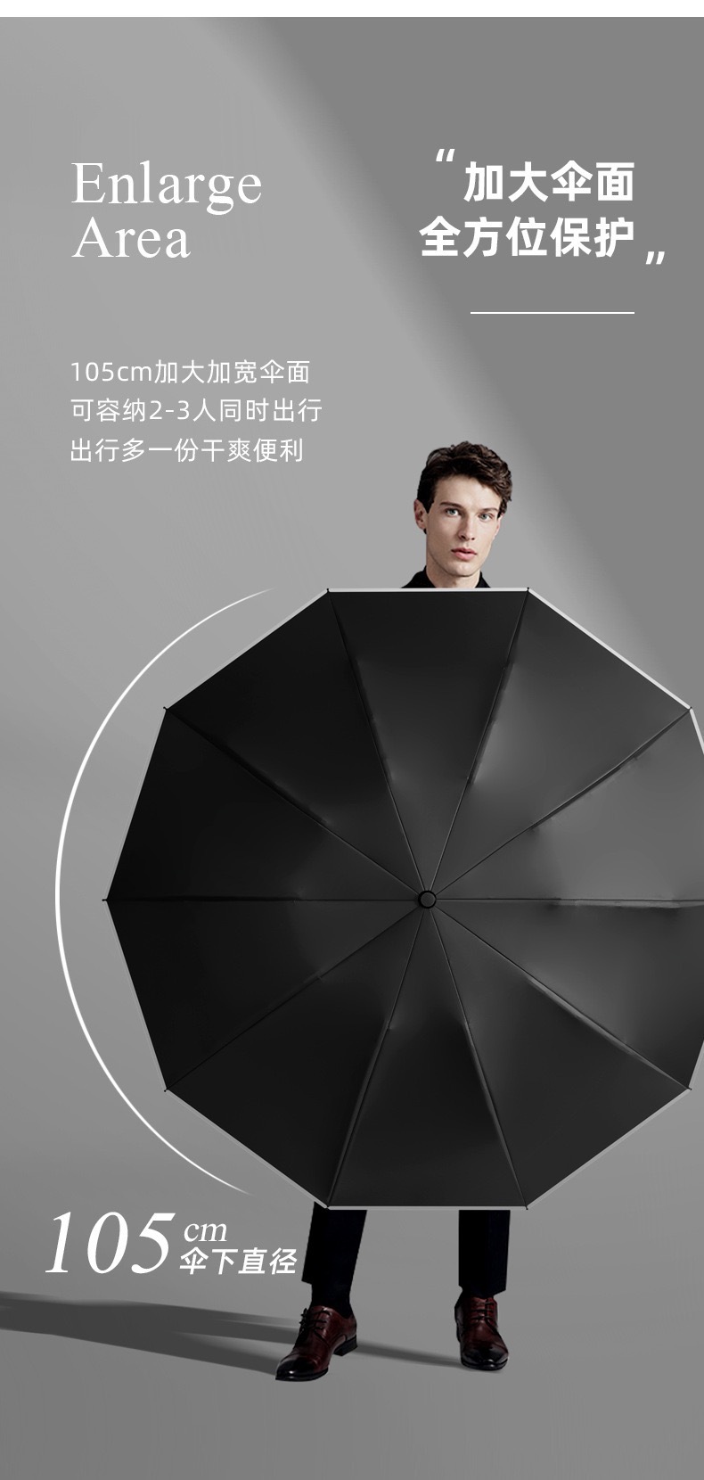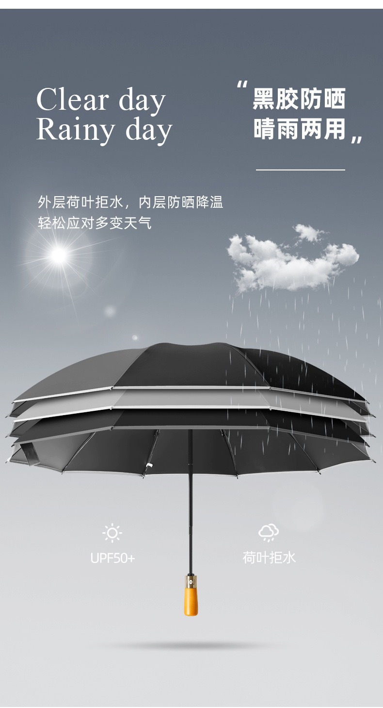 • [클래식 블랙] 자동 10 뼈 앞으로 우산 단단한 나무 손잡이