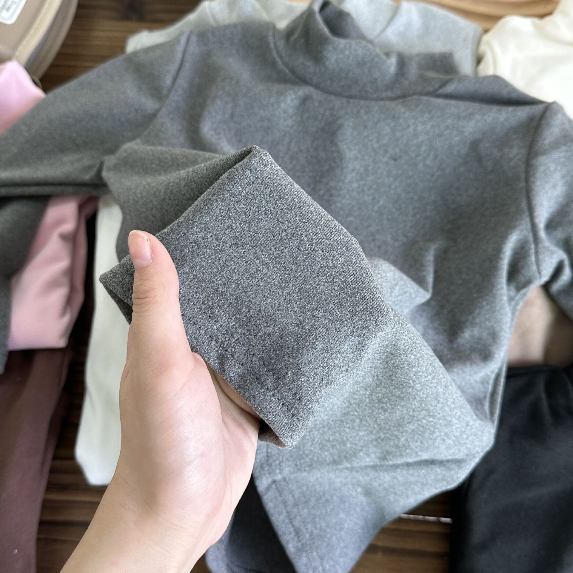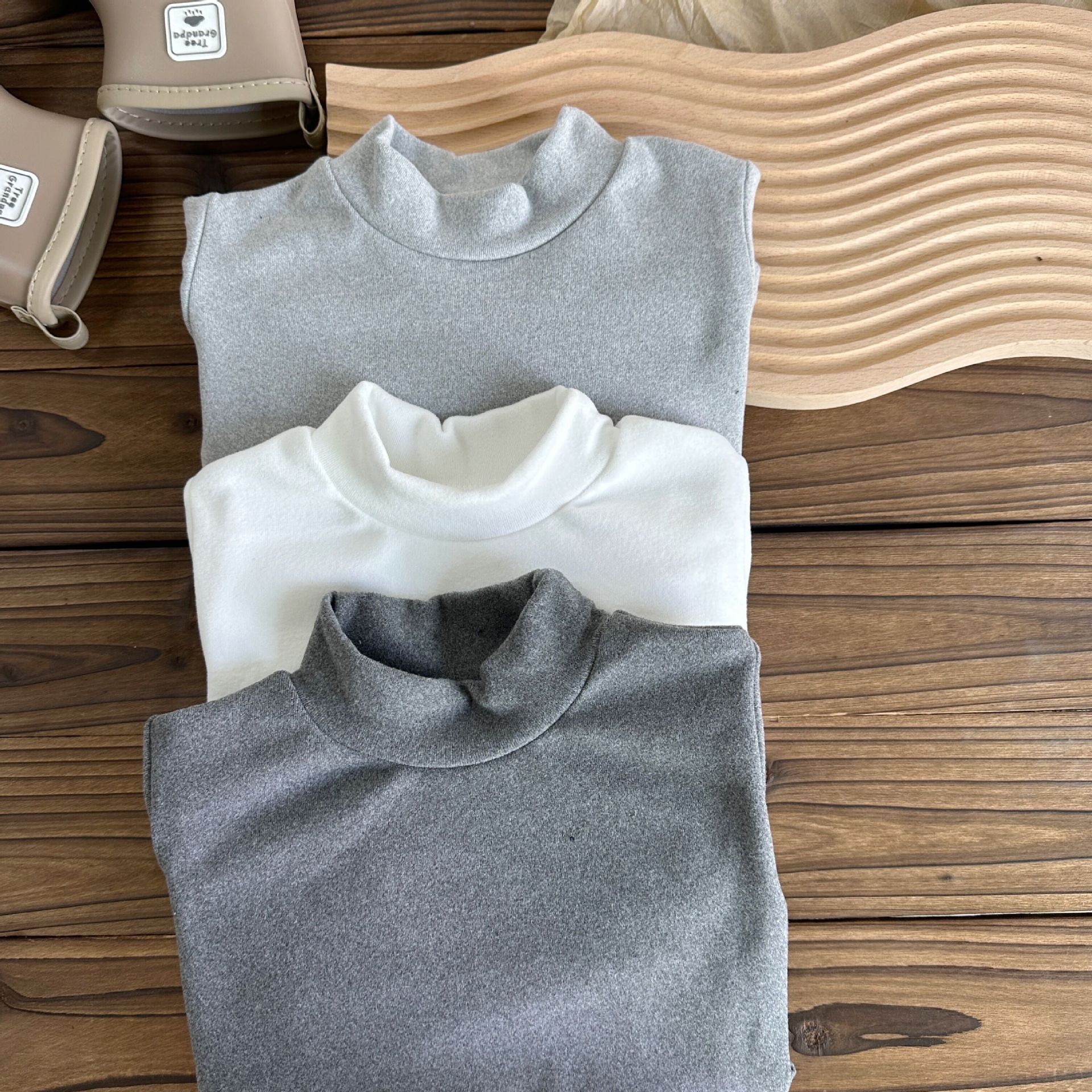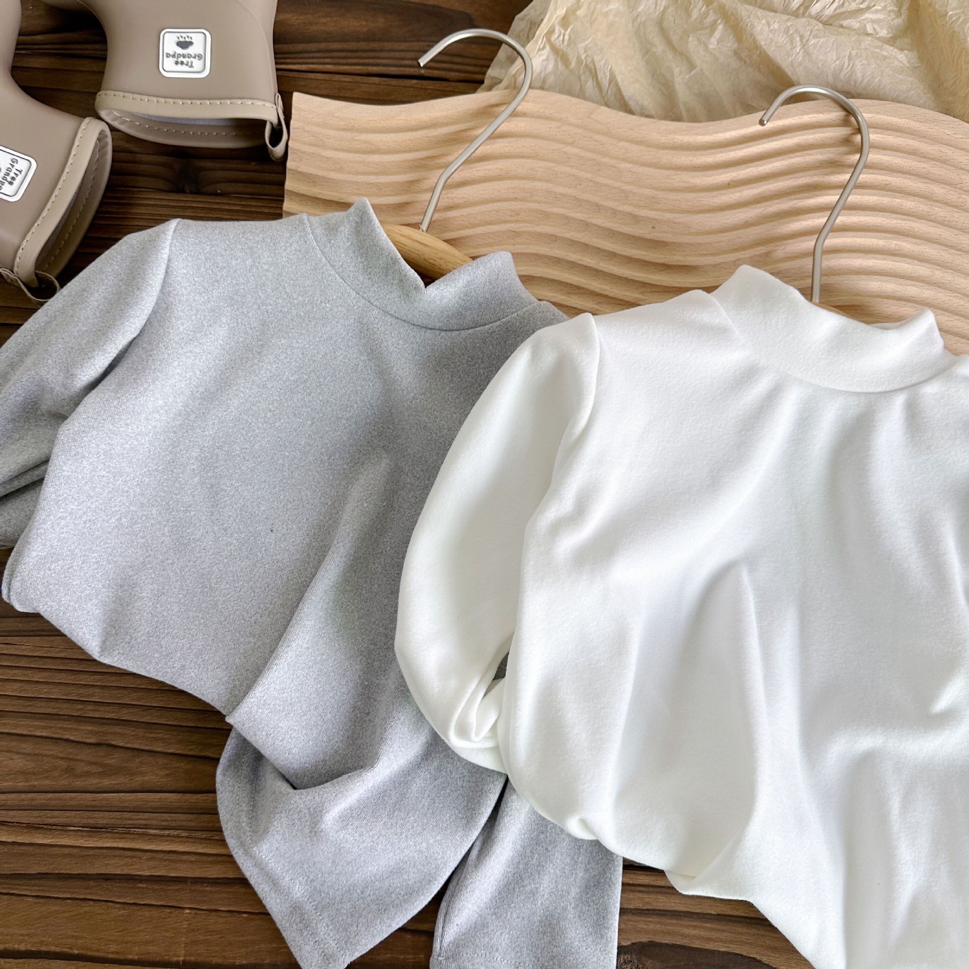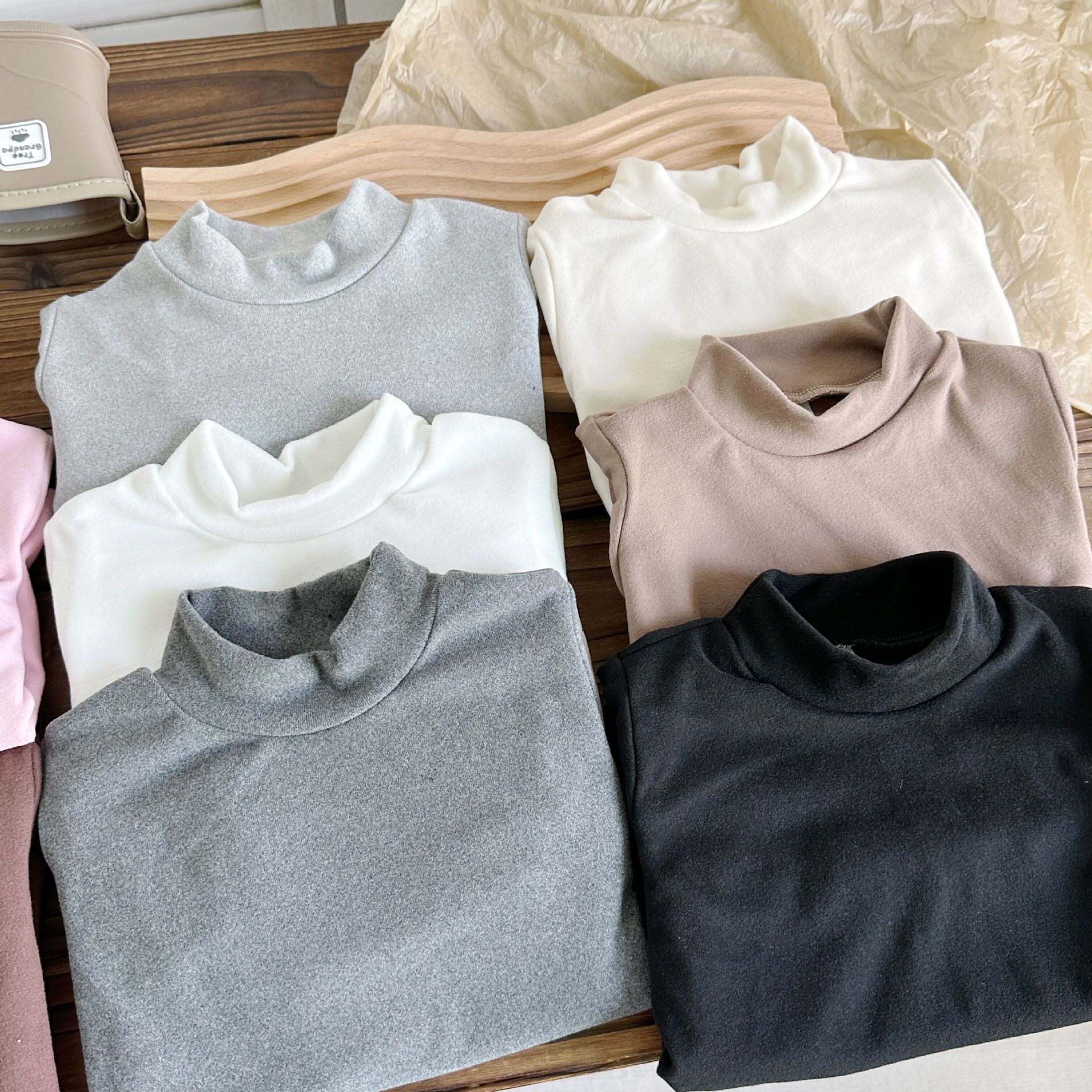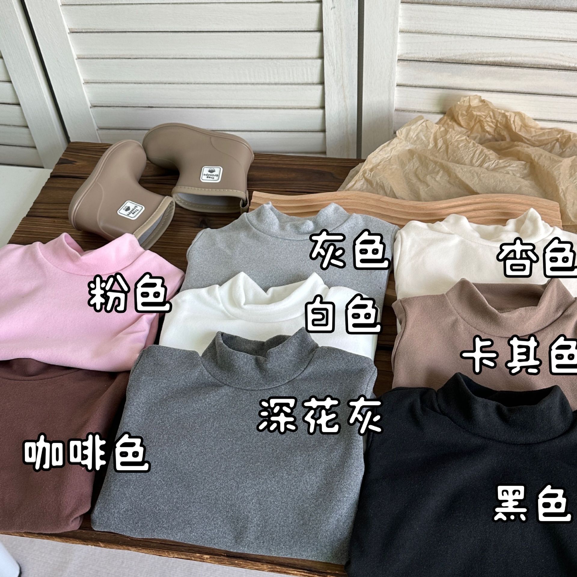 어린이 하프 터틀넥 단색 벨벳 바닥 셔츠 2024 겨울 새 남성과 여성의 두꺼운 긴팔 티셔츠 내복스토어 가기