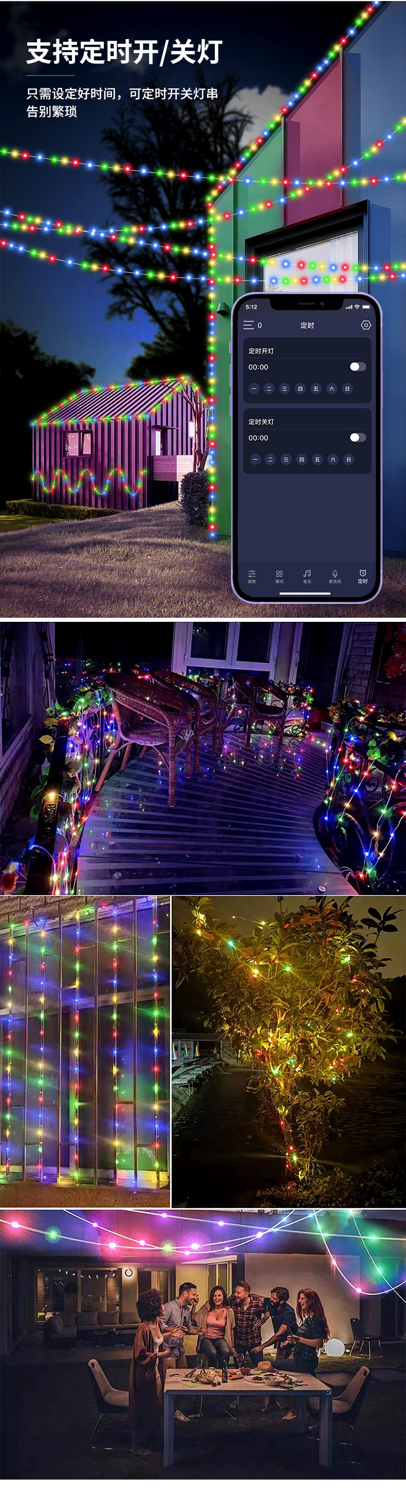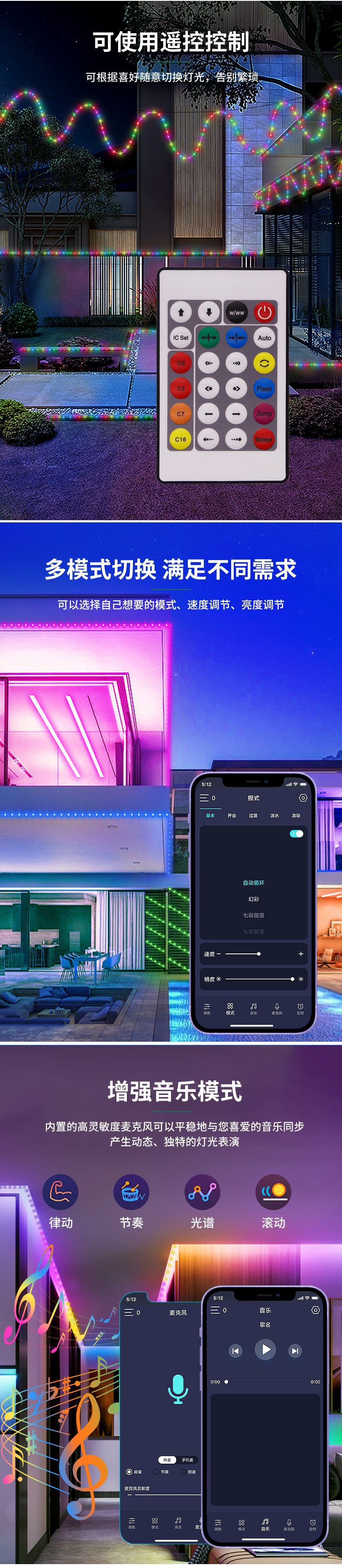 국경 간 스마트 가죽 끈 조명 야외 방수 3 선 led 문자열 조명 앱 원격 제어 문자열 조명 도매 크리스마스 조명스토어 가기