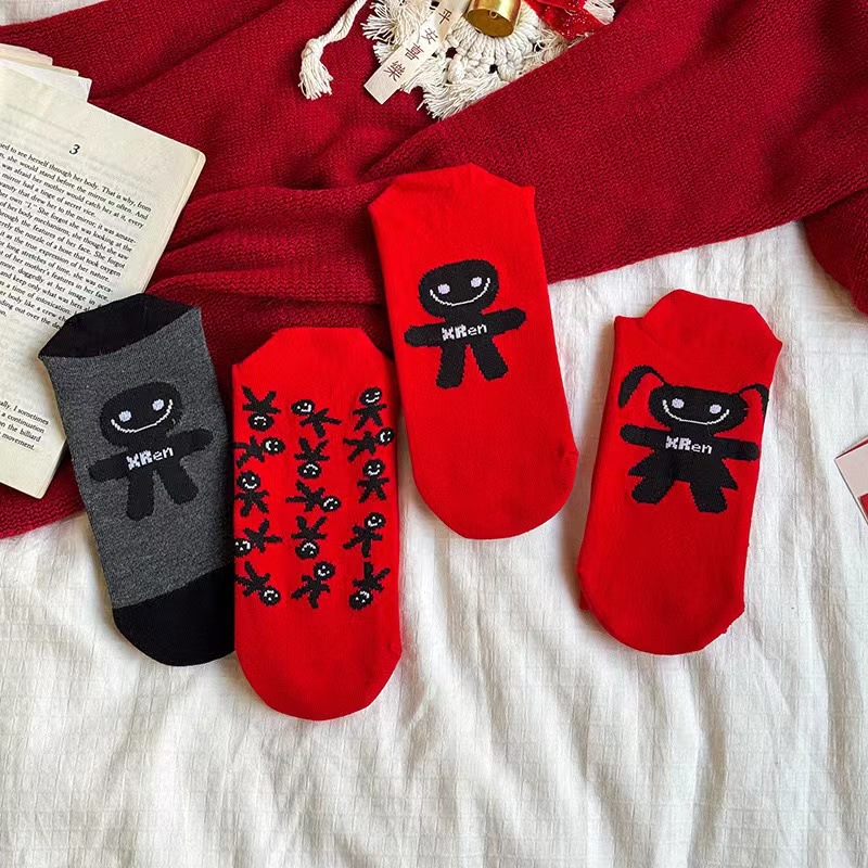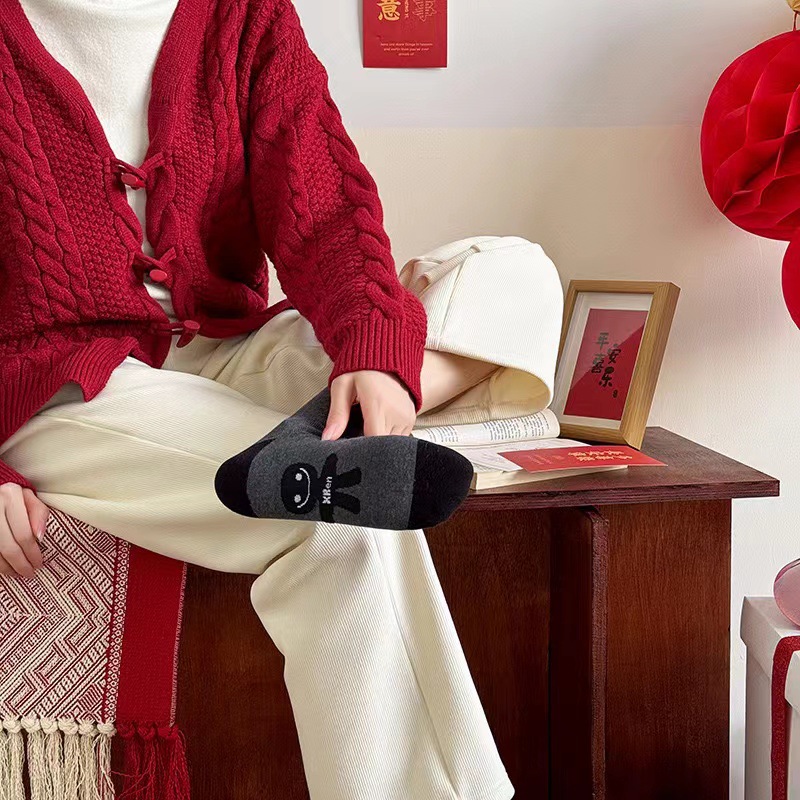 2024 새해 빨간 양말 남자와 여자 부부의 출생 년 성격 빨간 중간 송아지 길이 양말 TikTok 같은 패션 스타킹스토어 가기