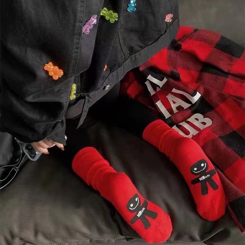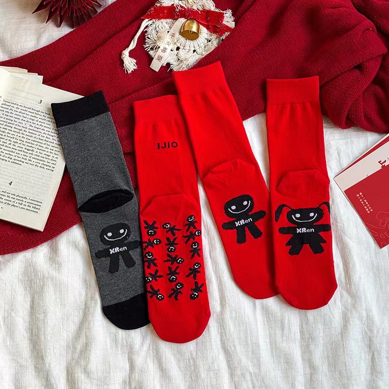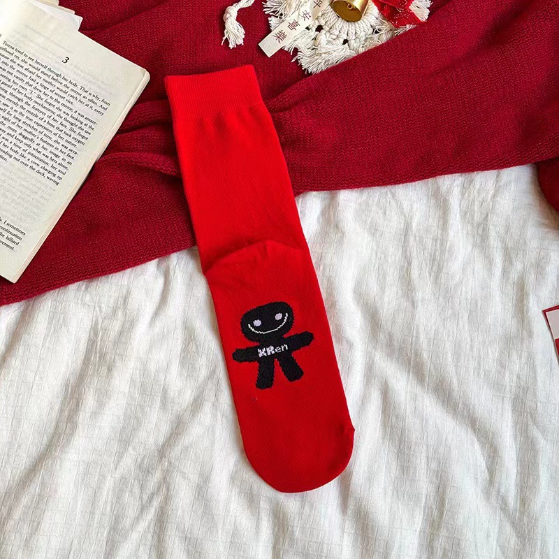 2024 새해 빨간 양말 남자와 여자 부부의 출생 년 성격 빨간 중간 송아지 길이 양말 TikTok 같은 패션 스타킹