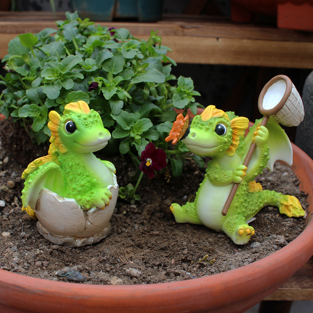 국경 용 년 창조적 인 만화 샤오롱 야외 정원 작은 장식품 인형 수지 공예 시뮬레이션 동물 장식품스토어 가기