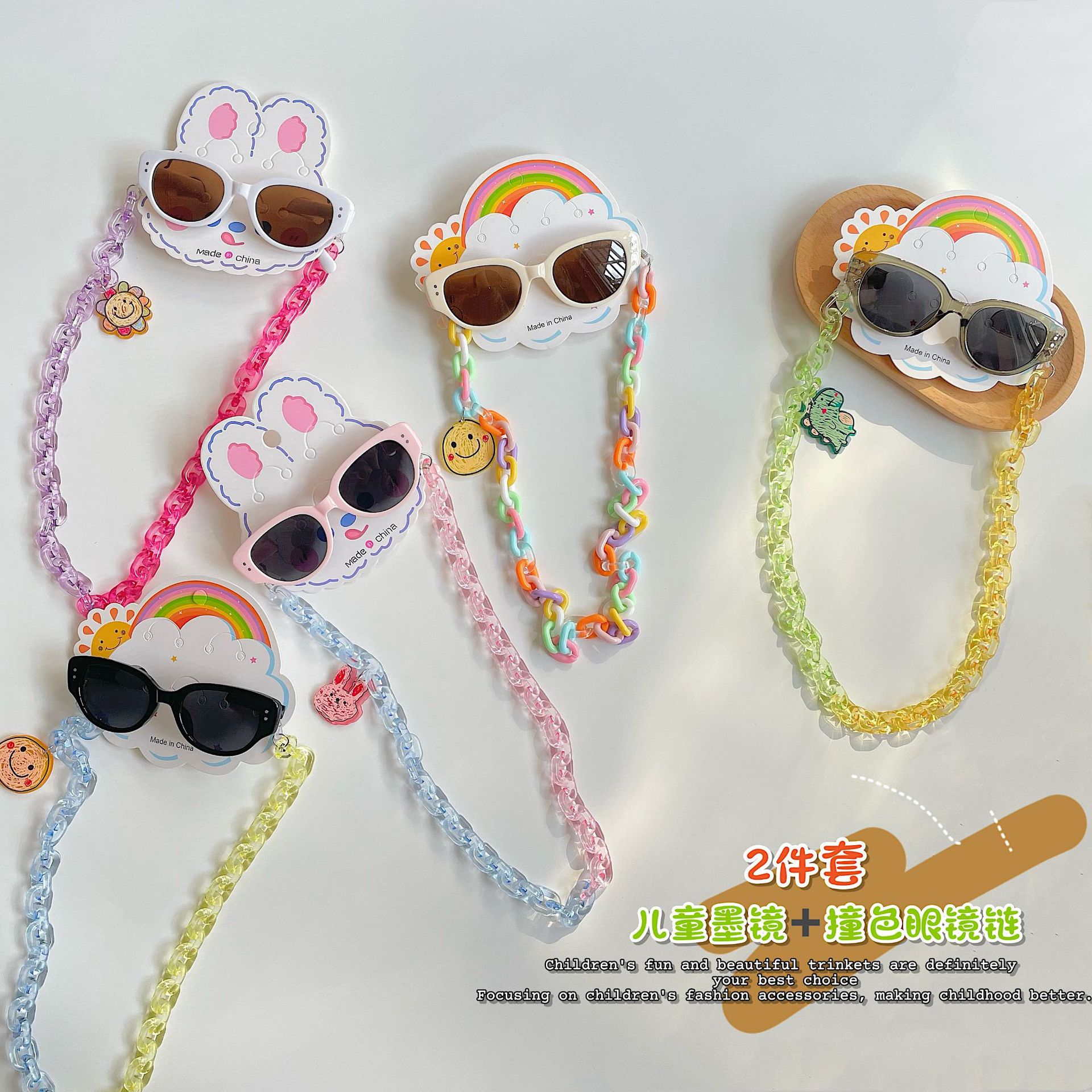 인즈 한국의 봄과 여름 안경이 달린 새로운 어린이 선글라스 체인 세트 아기 패셔너블 안티 UV 선글라스 트렌디