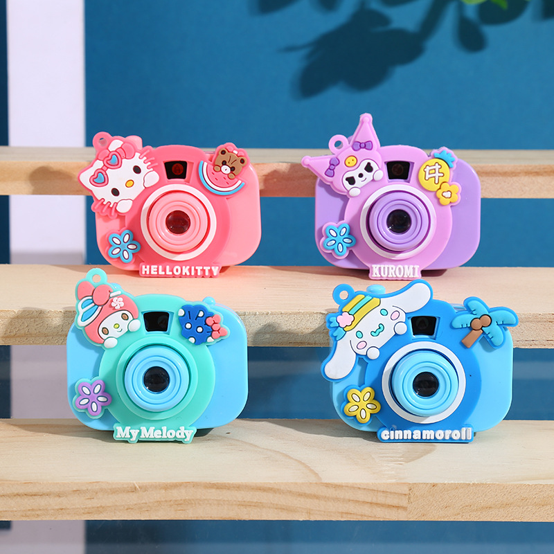 창조적 인 산리오 프로젝션 카메라 키 체인 어린이 빛나는 장난감 벚꽃 토끼 책가방 펜던트 클로 기계 선물스토어 가기
