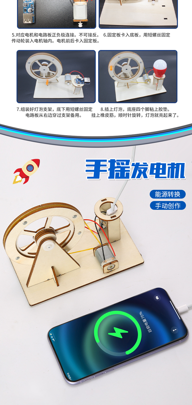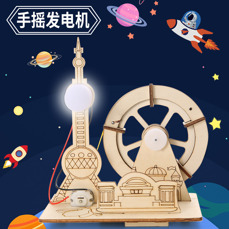 DIY 핸드 크랭킹 발전기 기술 작은 생산 과학 물리학 작은 실험 손으로 조립 된 어린이 과학 및 교육 장난감스토어 가기