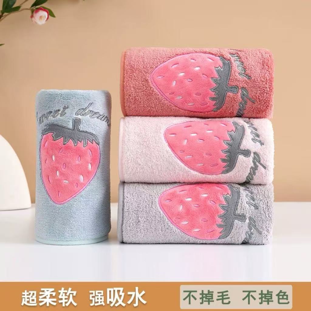 직접 판매 산호 양털 딸기 가정용 수건 목욕 타월 부드럽고 편안하지 않은 샹차오 같은 복지 타월