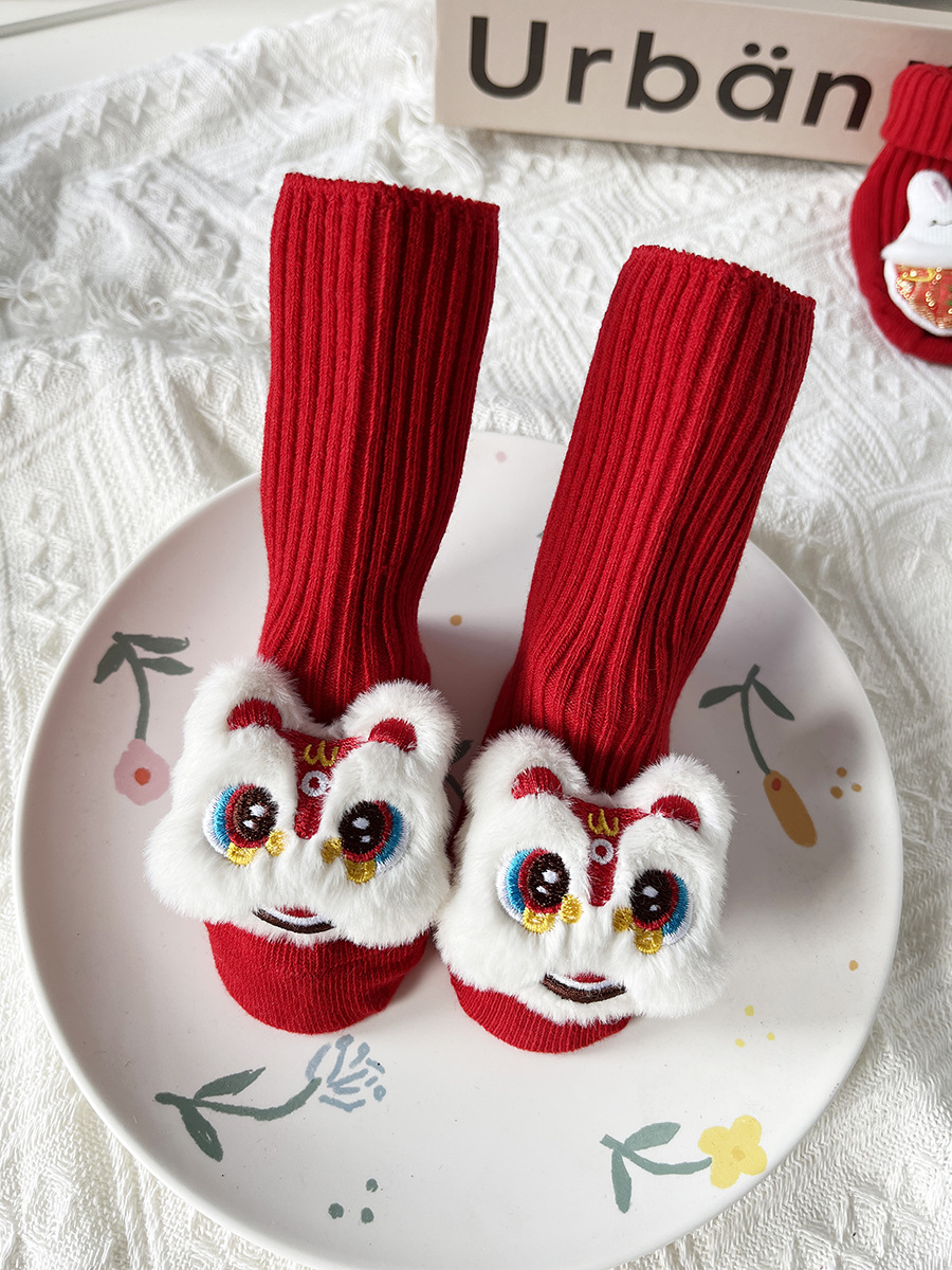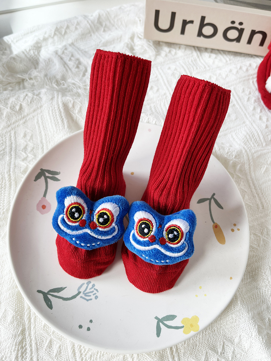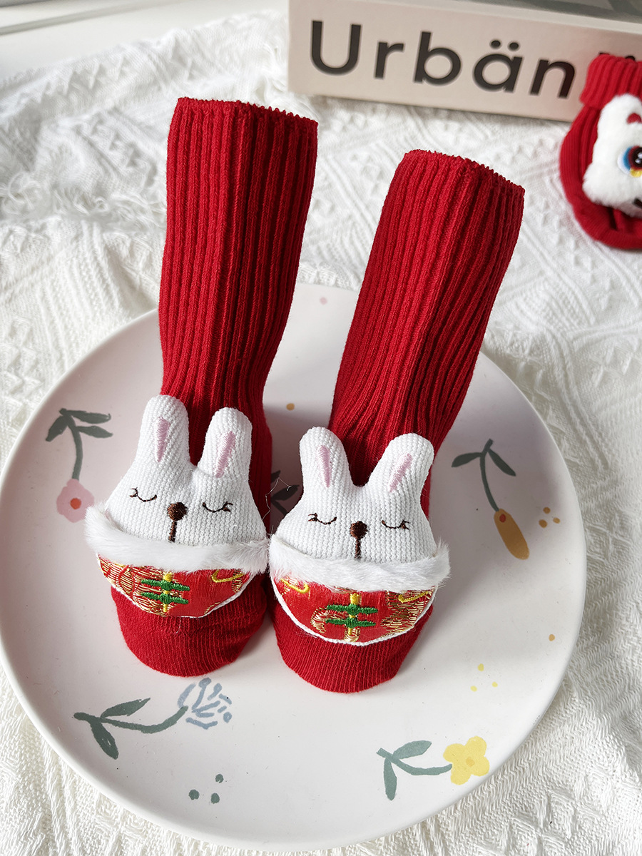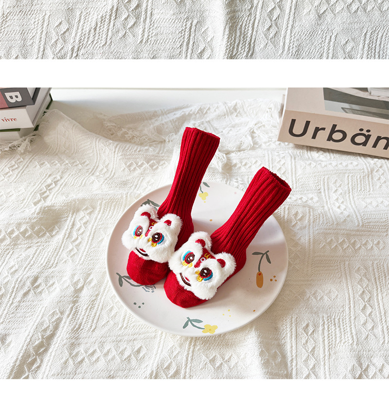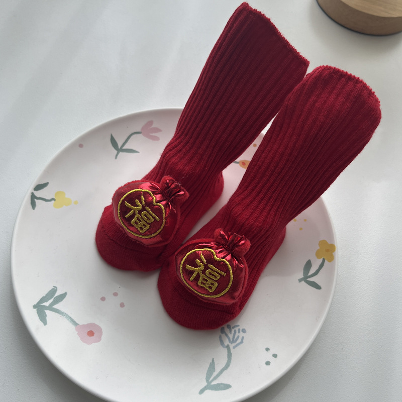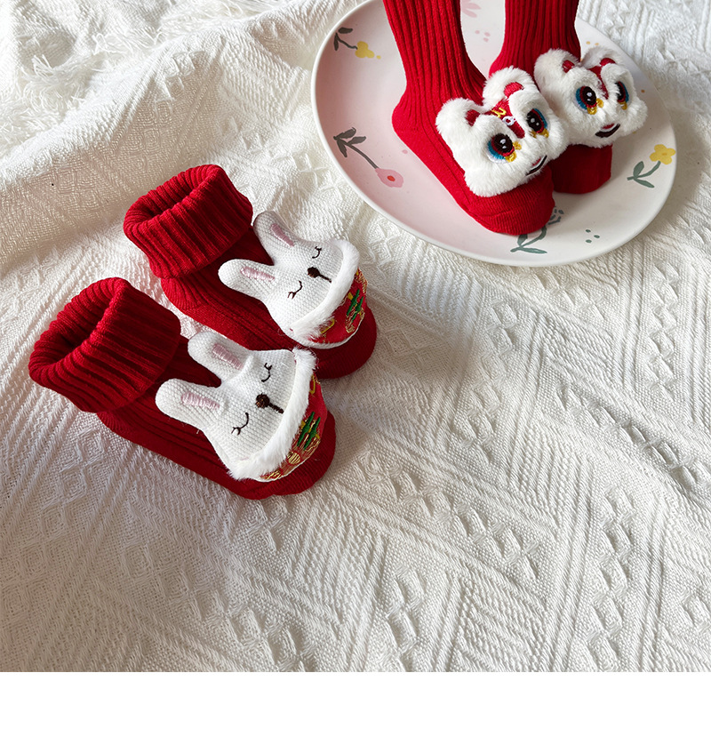 얇은 아기 새해 바닥 양말 빨간 중간 송아지 아기 양말 미끄럼 신생아 더블 바늘면 축제 만화 양말스토어 가기