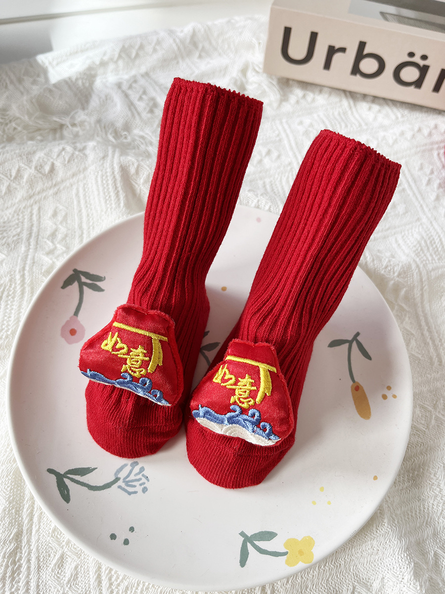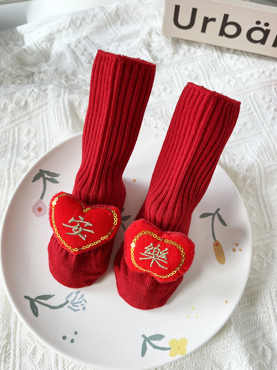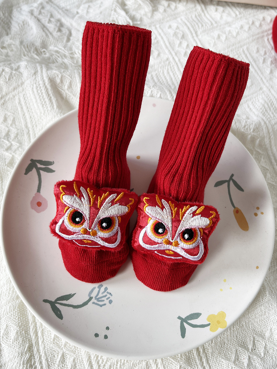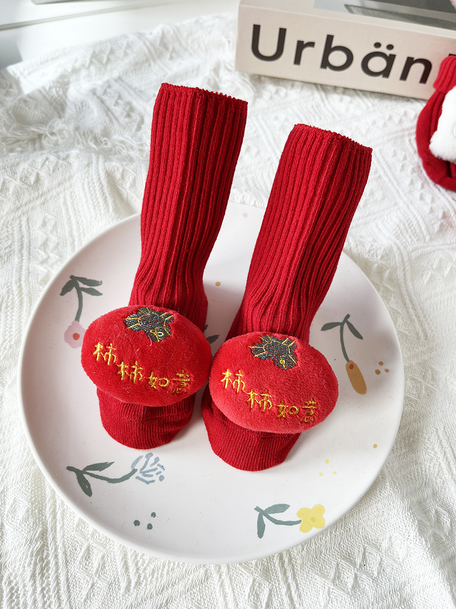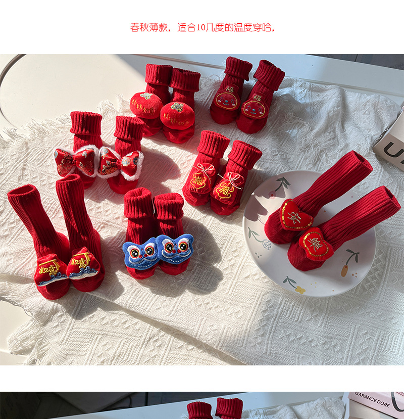 얇은 아기 새해 바닥 양말 빨간 중간 송아지 아기 양말 미끄럼 신생아 더블 바늘면 축제 만화 양말스토어 가기