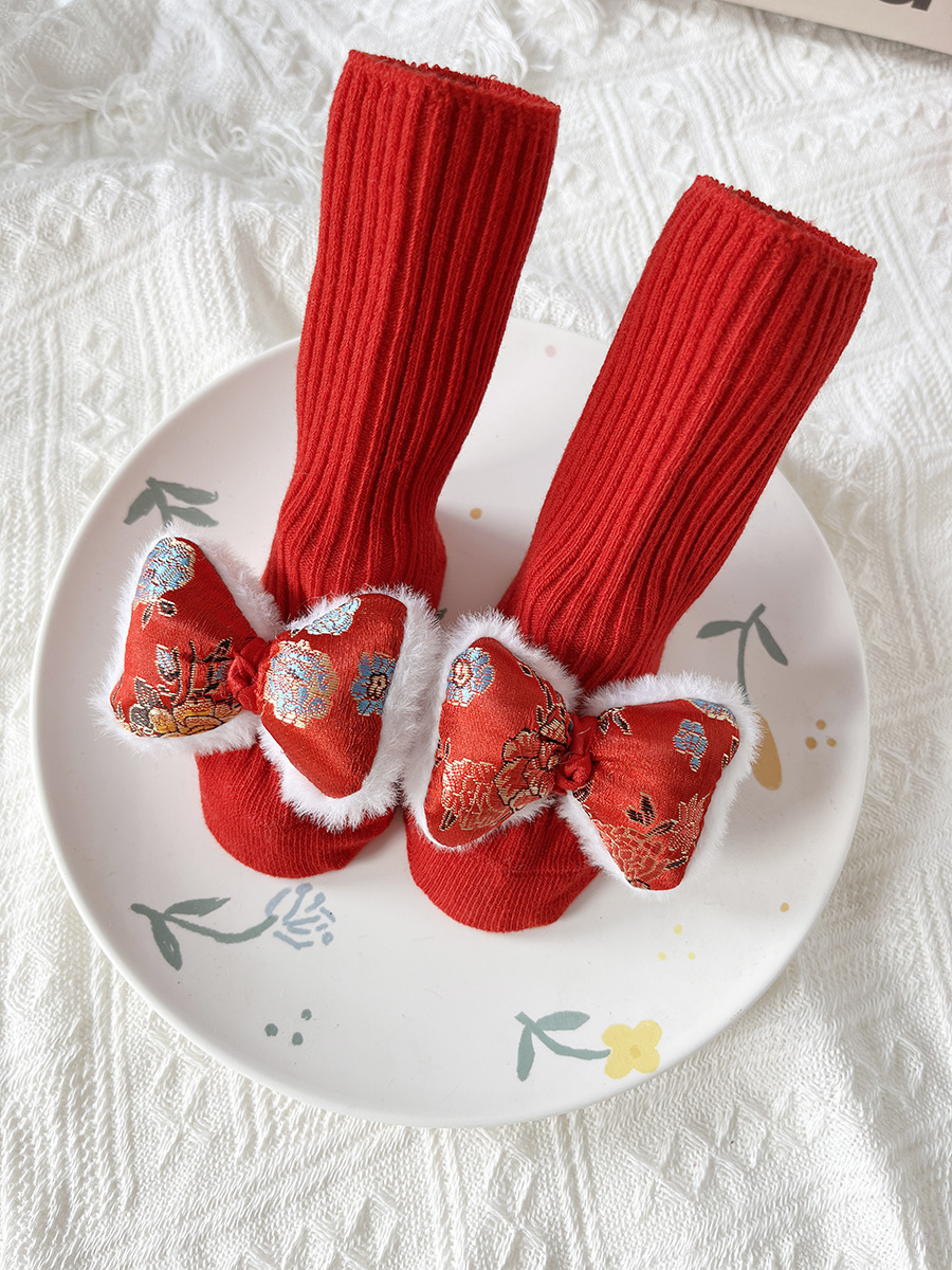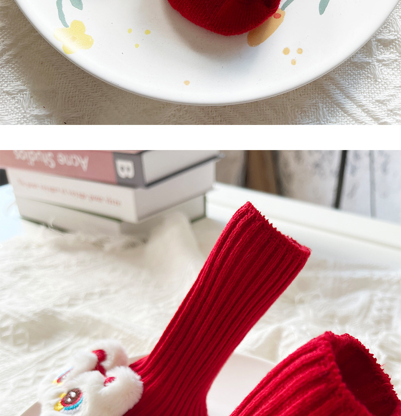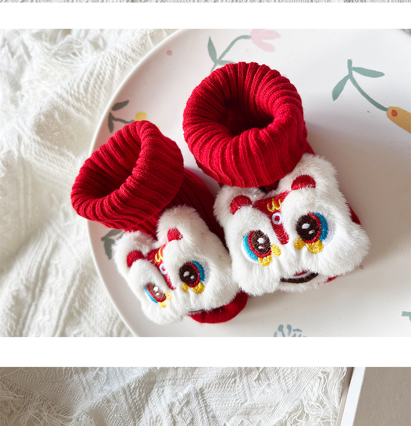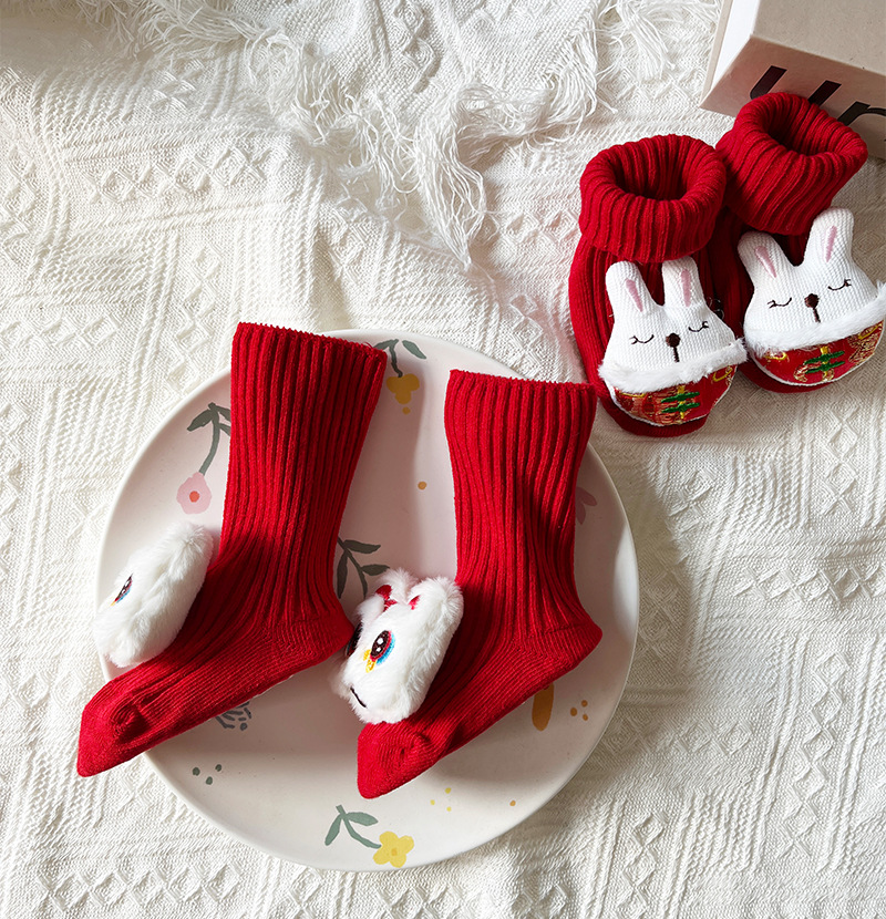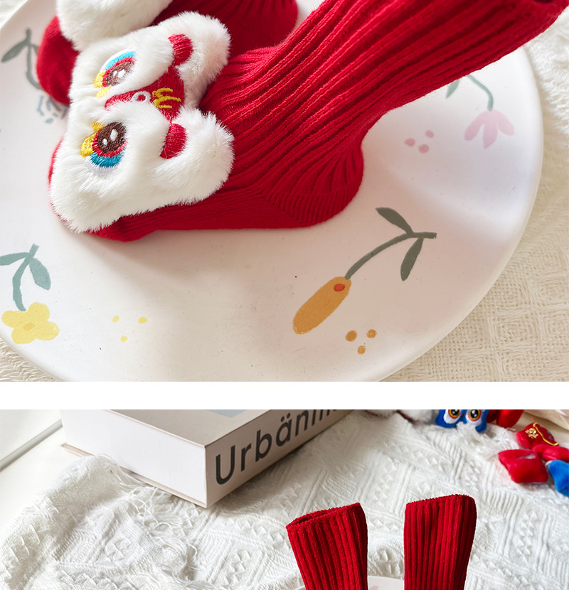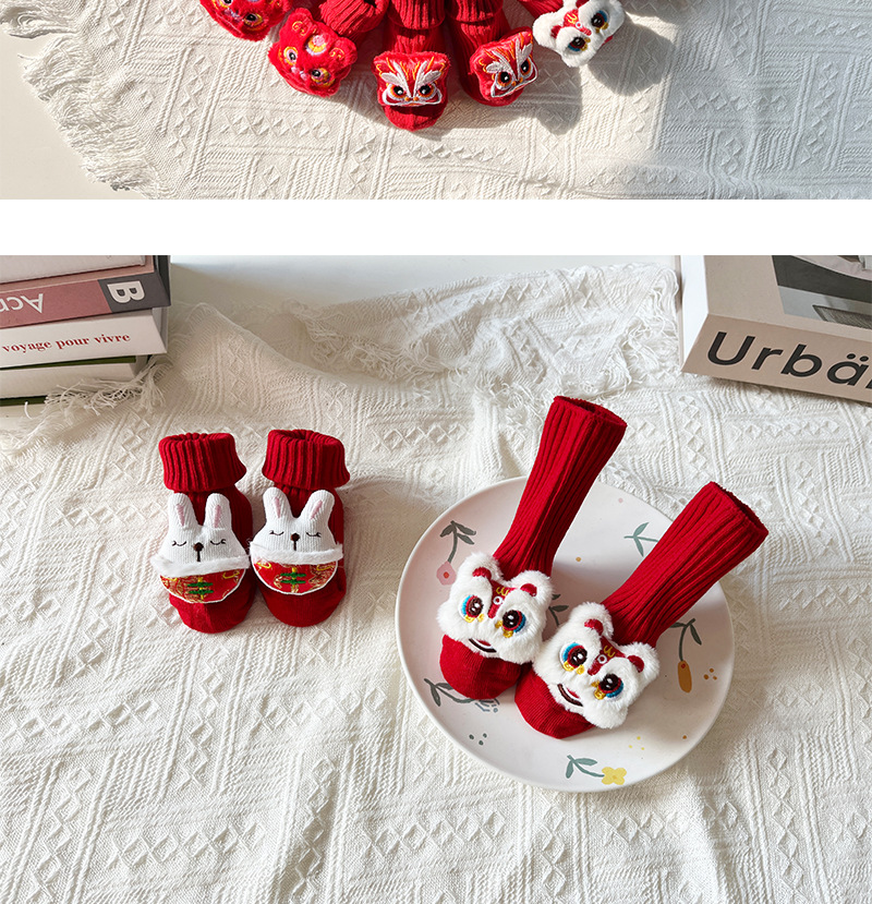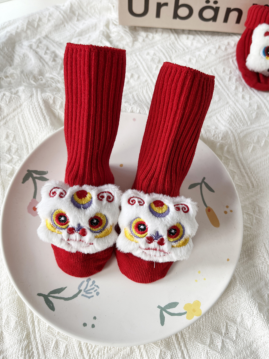 얇은 아기 새해 바닥 양말 빨간 중간 송아지 아기 양말 미끄럼 신생아 더블 바늘면 축제 만화 양말스토어 가기