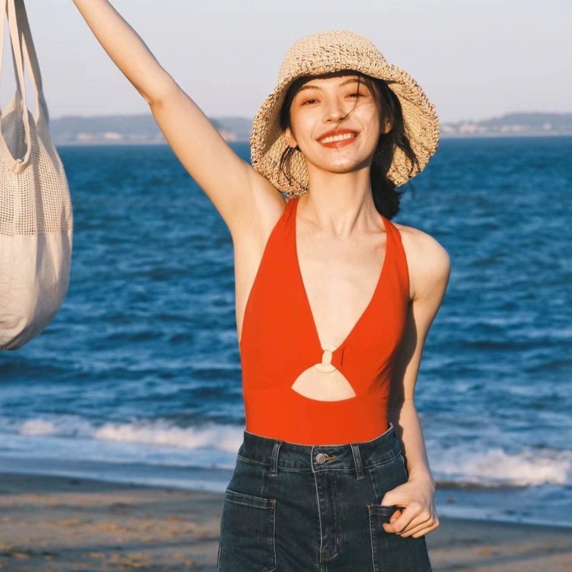 고품질 나일론 아미노산 플랫 하이엔드 여성 수영복, 신상 원피스 핫걸 섹시 온천 수영복, 인터넷 연예인 비키니