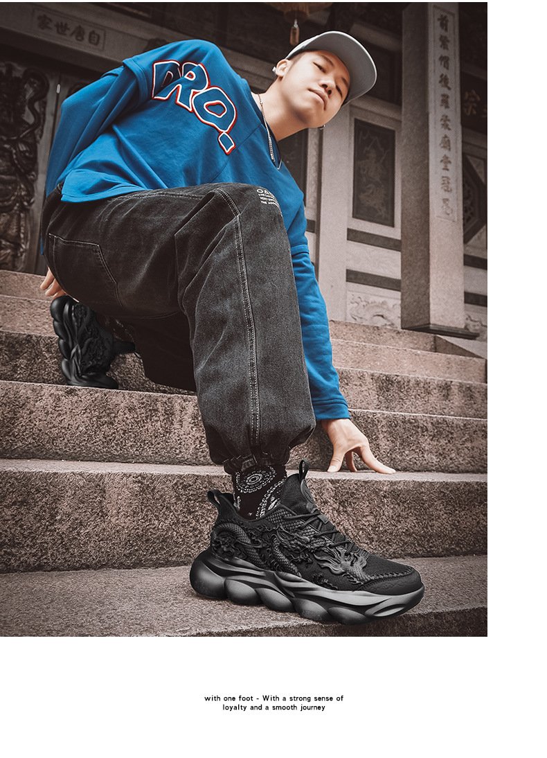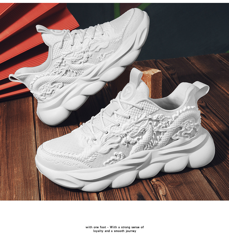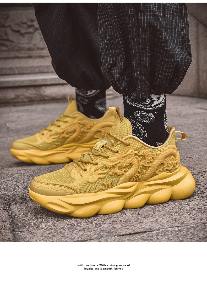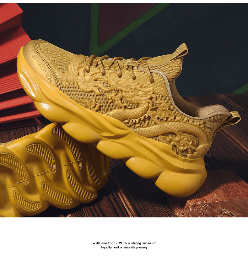 2024 년 드래곤 동물 년 신발 가을과 겨울 청소년 스포츠 부드러운 바닥 충격 흡수 빨간 운동화 높이 증가 아빠 남자 신발
