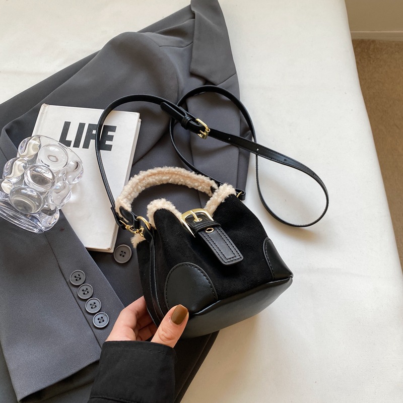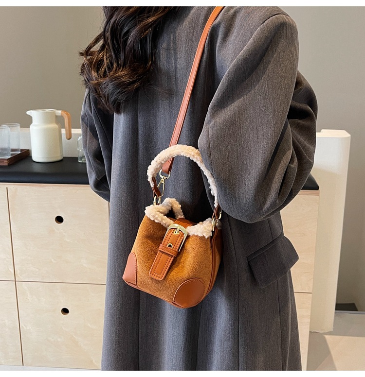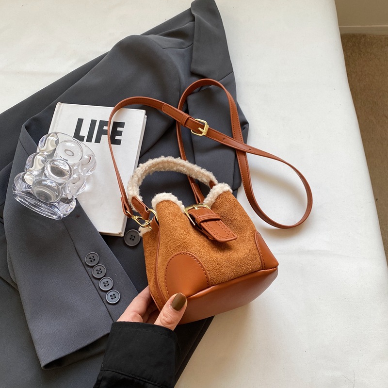 새로운 가을과 겨울 복고풍 패션 숄더백 봉제 메신저 가방 2024 여성을위한 한국식 틈새 휴대용 버킷 가방스토어 가기
