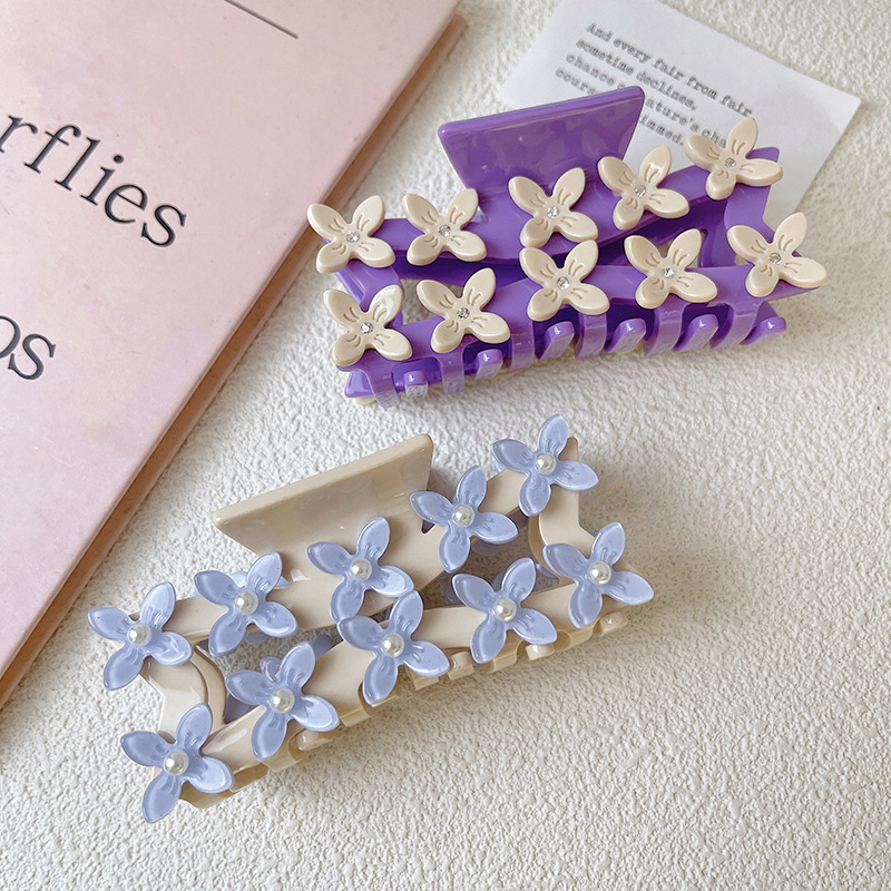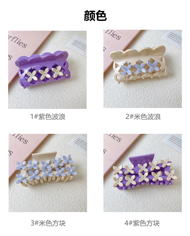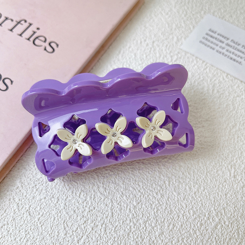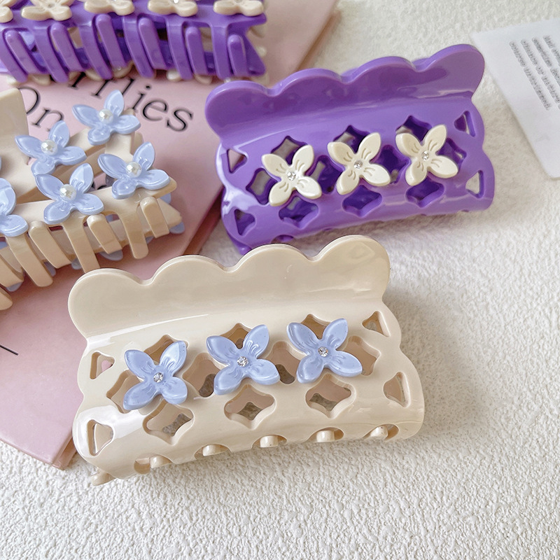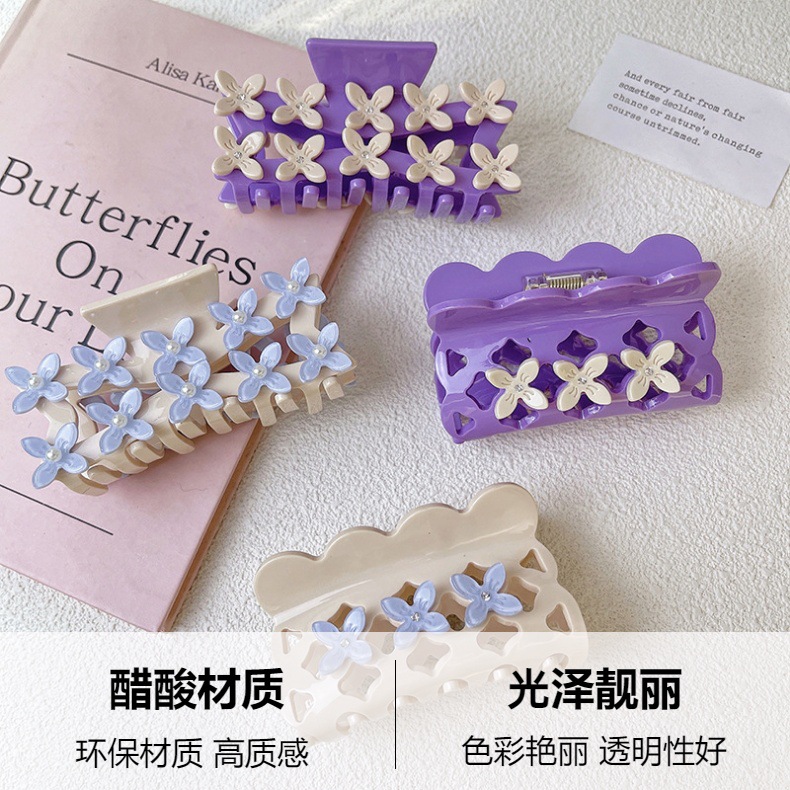 고급 3 차원 중공업 디자인 꽃 그립 간단한 대비 색상 아세테이트 머리핀 헤어 액세서리 중공 여성 상어 클립 헤어 그립스토어 가기