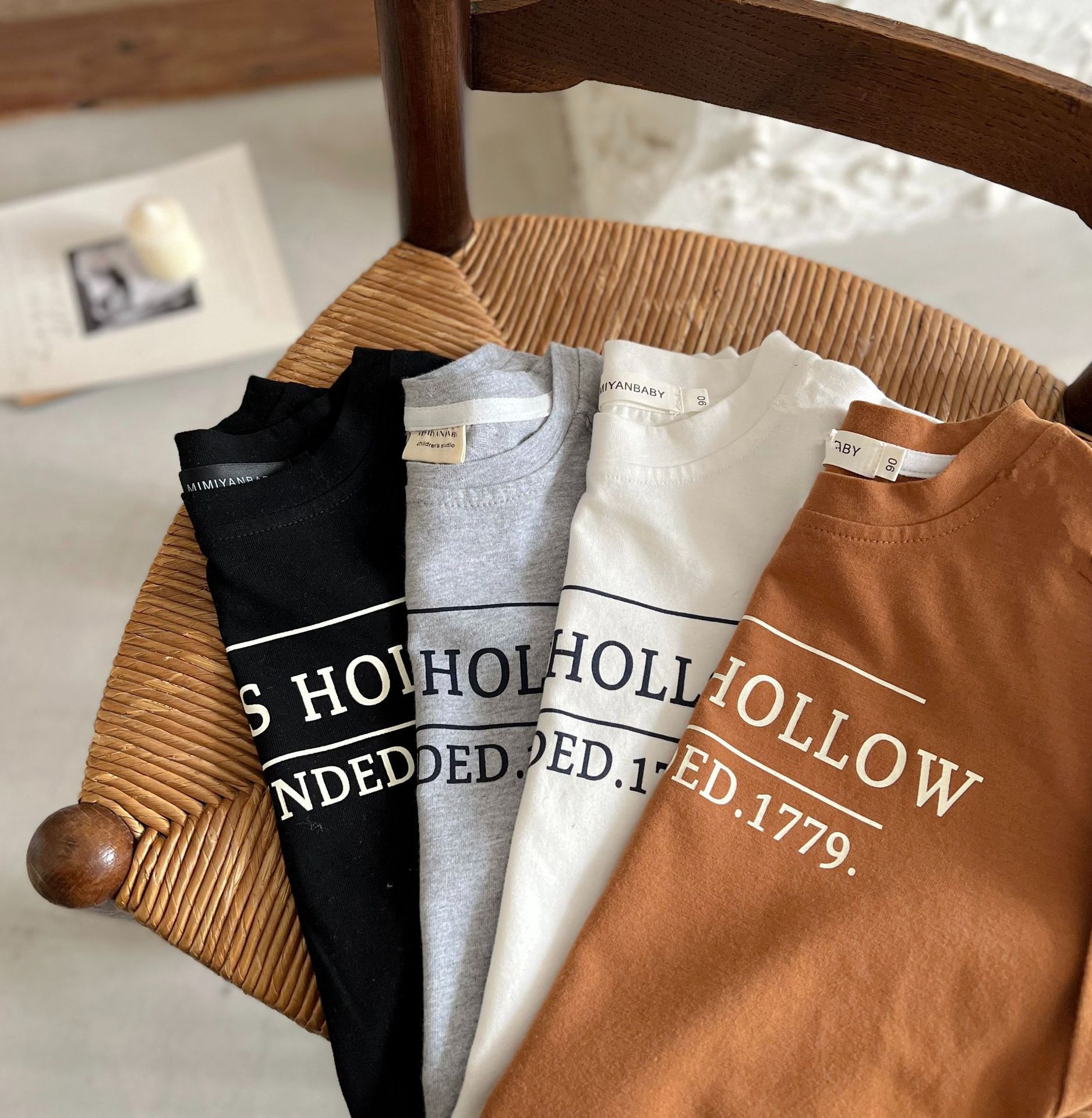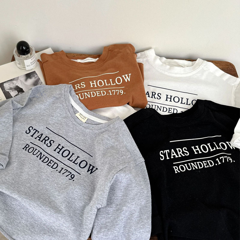 중소형 아동용 긴팔 티셔츠 2025 봄 신제품 남성 및 여성 베이비 라운드 넥 문자 다목적 순수 코튼 바닥 셔츠스토어 가기