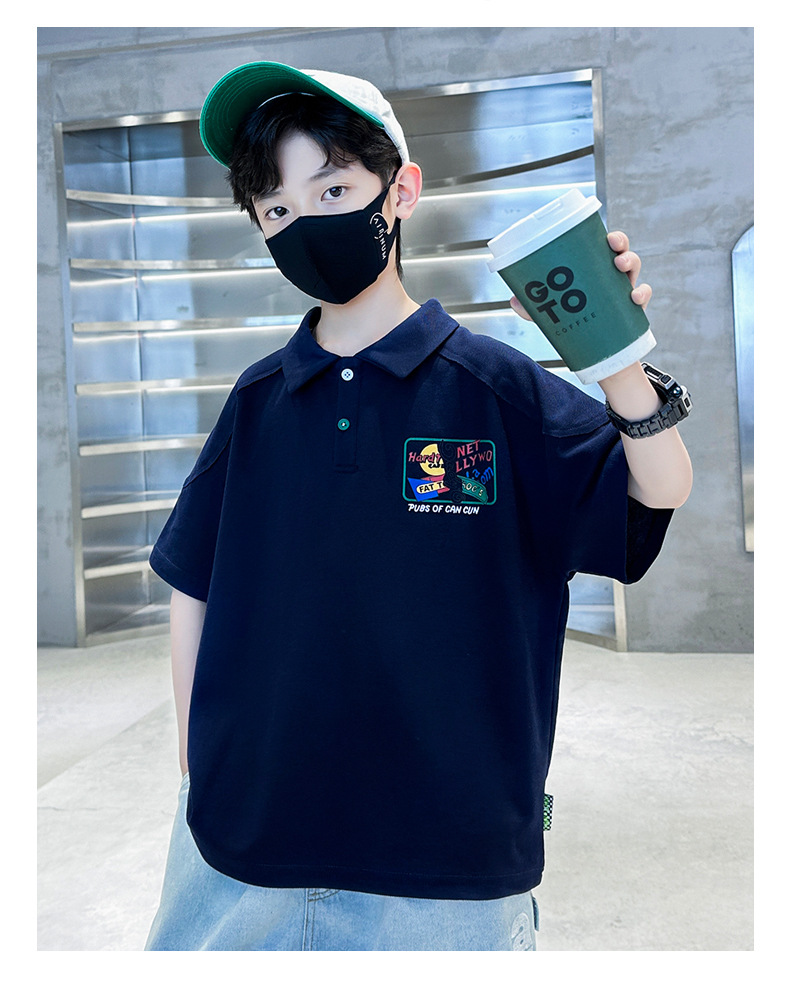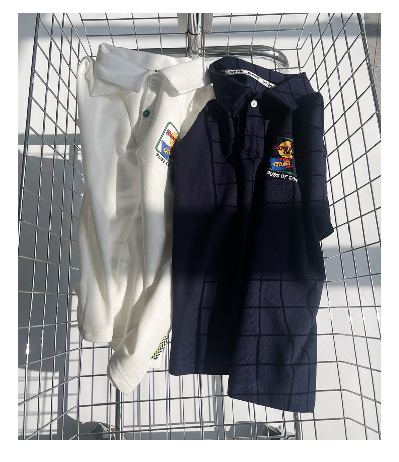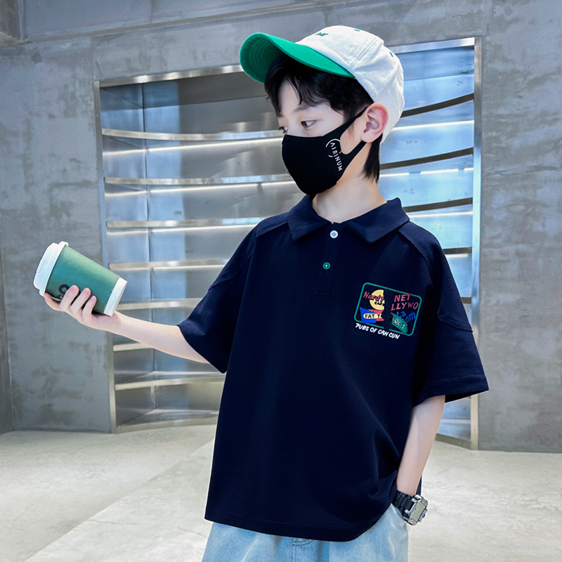 소년 반팔 폴로 셔츠 어린이 화이트 티셔츠 큰 소년 한국 스타일 여름 옷 2024 새로운 여름 탑스토어 가기