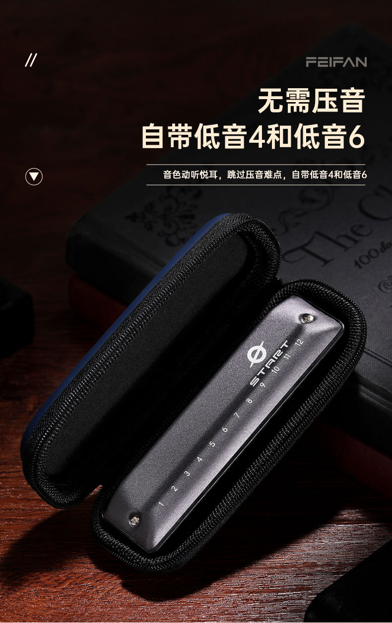 FEIFAN 12 홀 블루스 하모니카 풀 스케일베이스 밴드 FaLa 초보자 성인 하모니카 연주스토어 가기