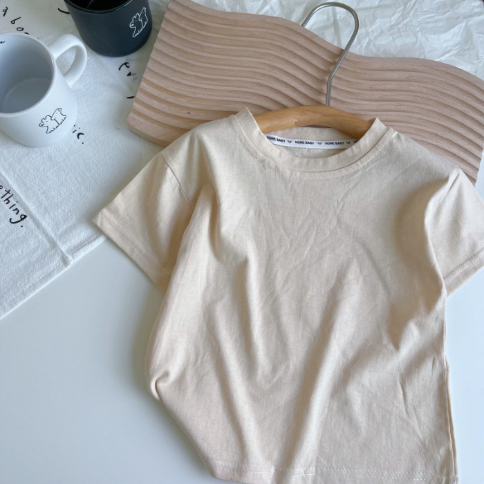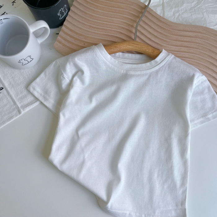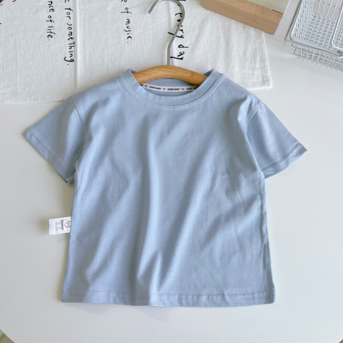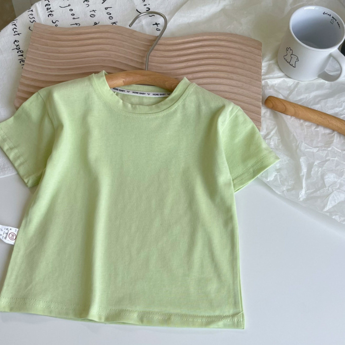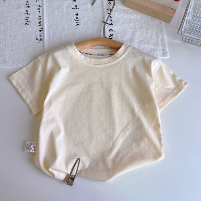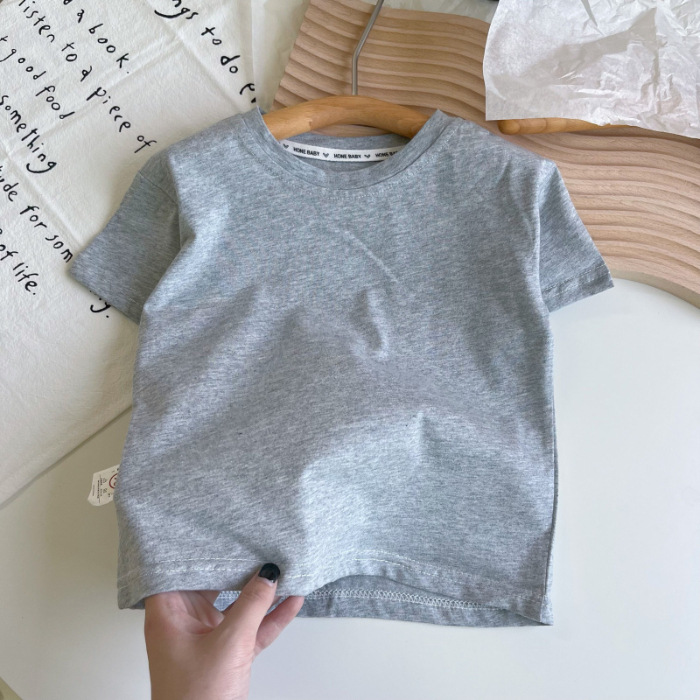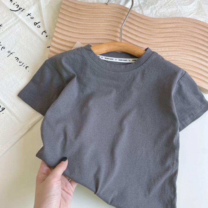 중소 어린이 여름, 단색 100% 코튼 반팔 티셔츠 남성 및 여성 베이비 언더 셔츠 얇은 원피스 배달스토어 가기