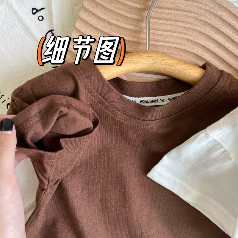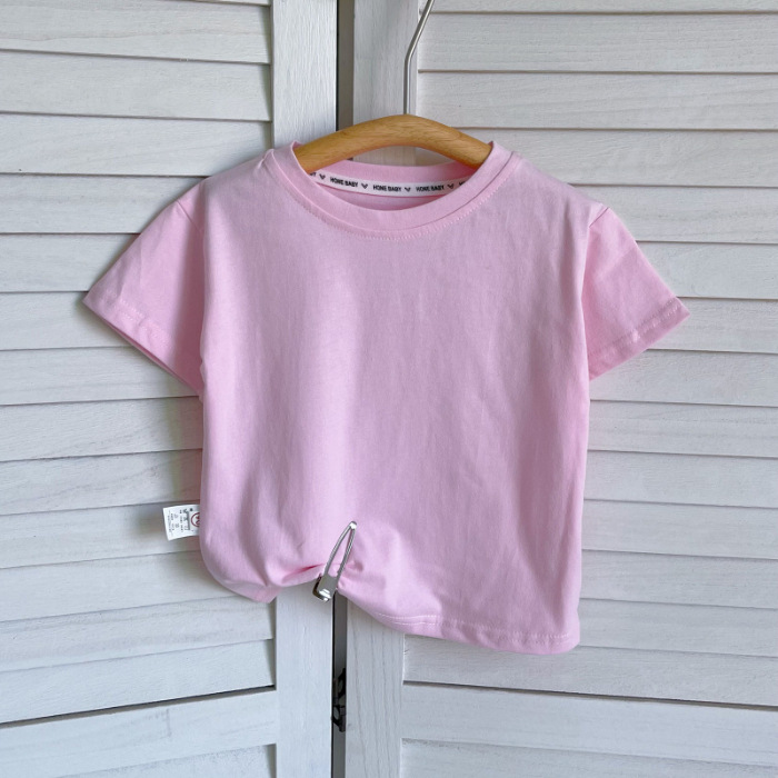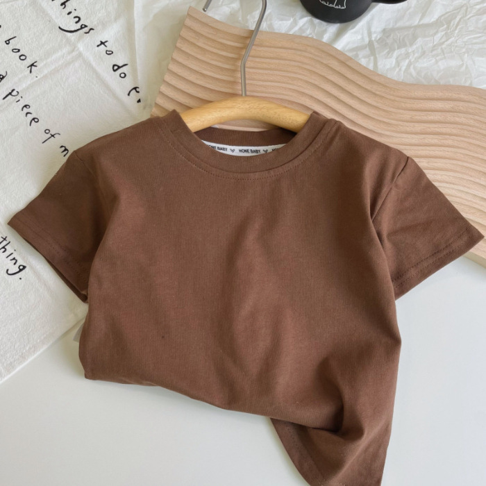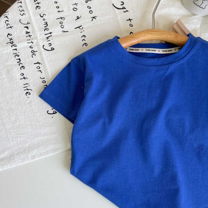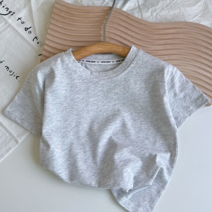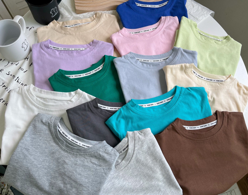 중소 어린이 여름, 단색 100% 코튼 반팔 티셔츠 남성 및 여성 베이비 언더 셔츠 얇은 원피스 배달스토어 가기